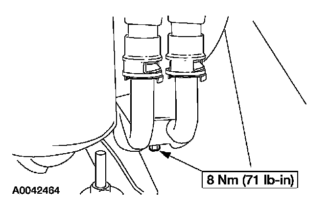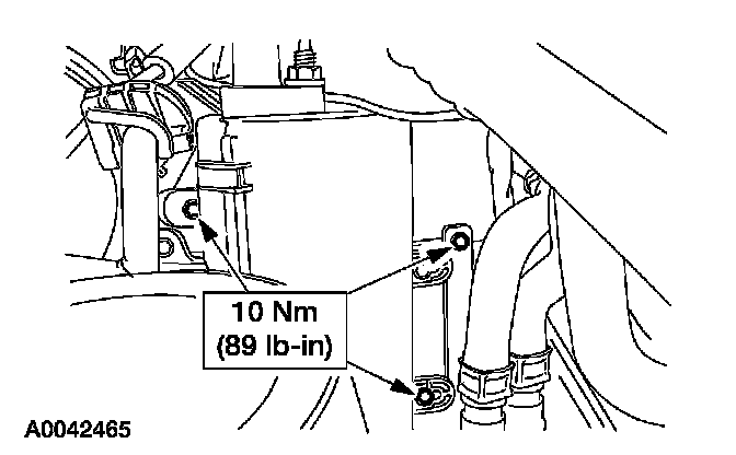 2. Remove the bolt and position the auxiliary heater lines aside.