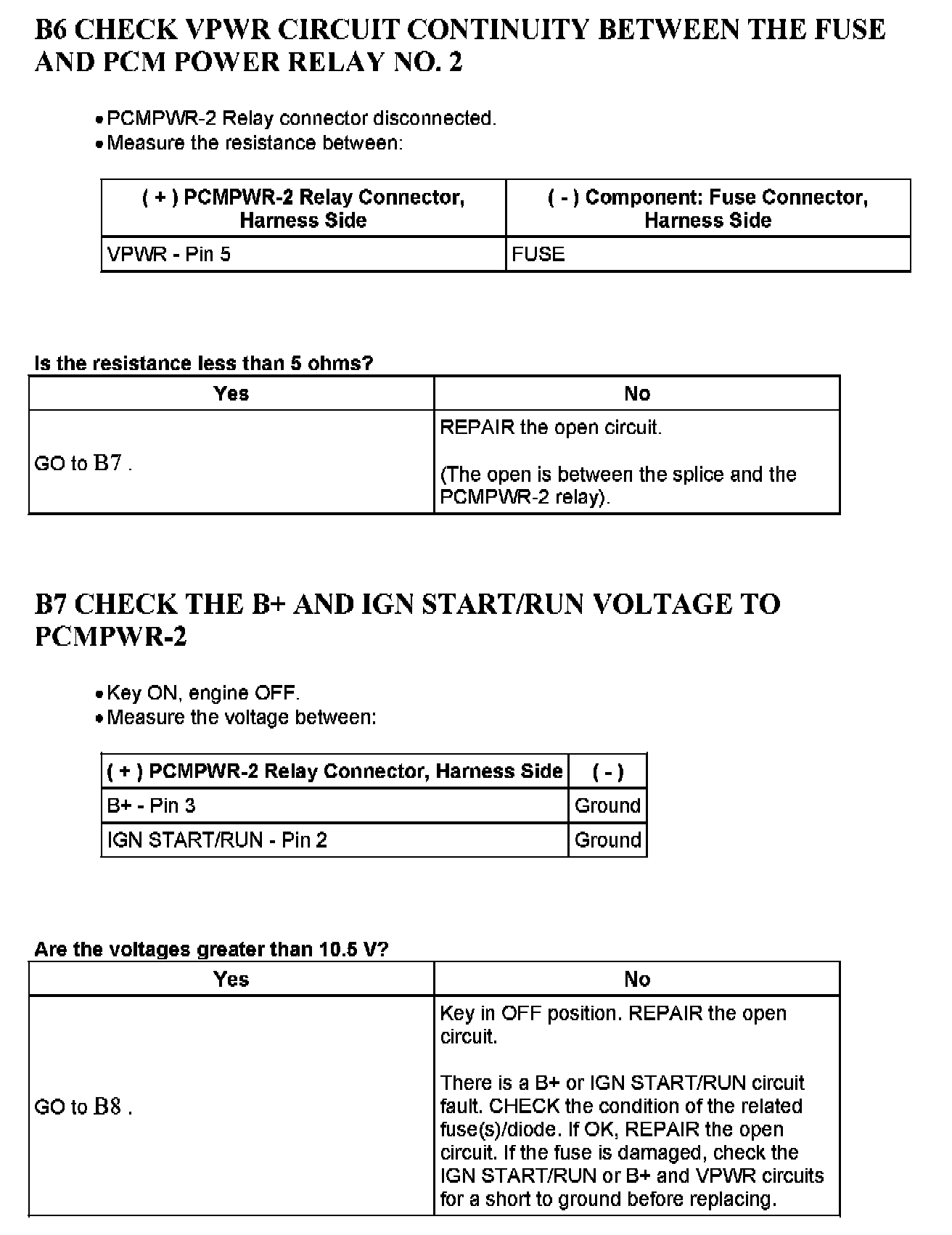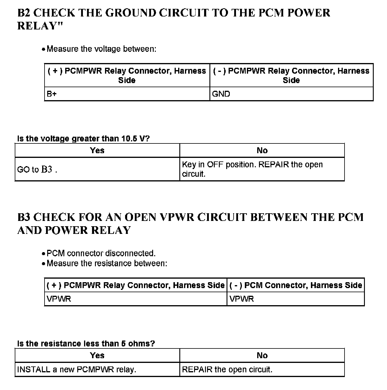 Test B: Powertrain Control Module PCM Power Relay