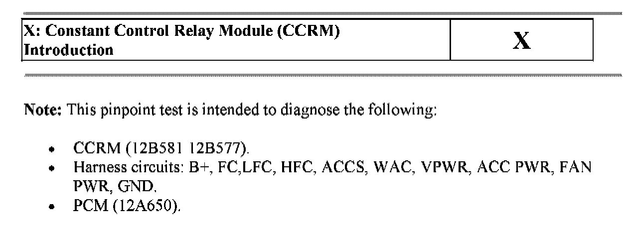 PINPOINT TEST X: CONSTANT CONTROL RELAY MODULE (CCRM)