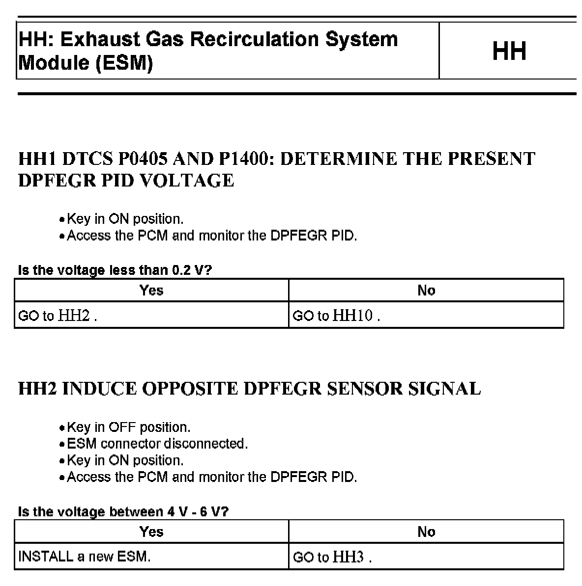 Home >> Ford >> 2004 >> Excursion 2WD V10-6.8L VIN S >> Repair and Diagnosis >> Powertrain Management >> Computers and Control Systems >> Testing and Inspection >> Pinpoint Tests >> Tests HH: Exhaust Gas Recirculation System Module (ESM)