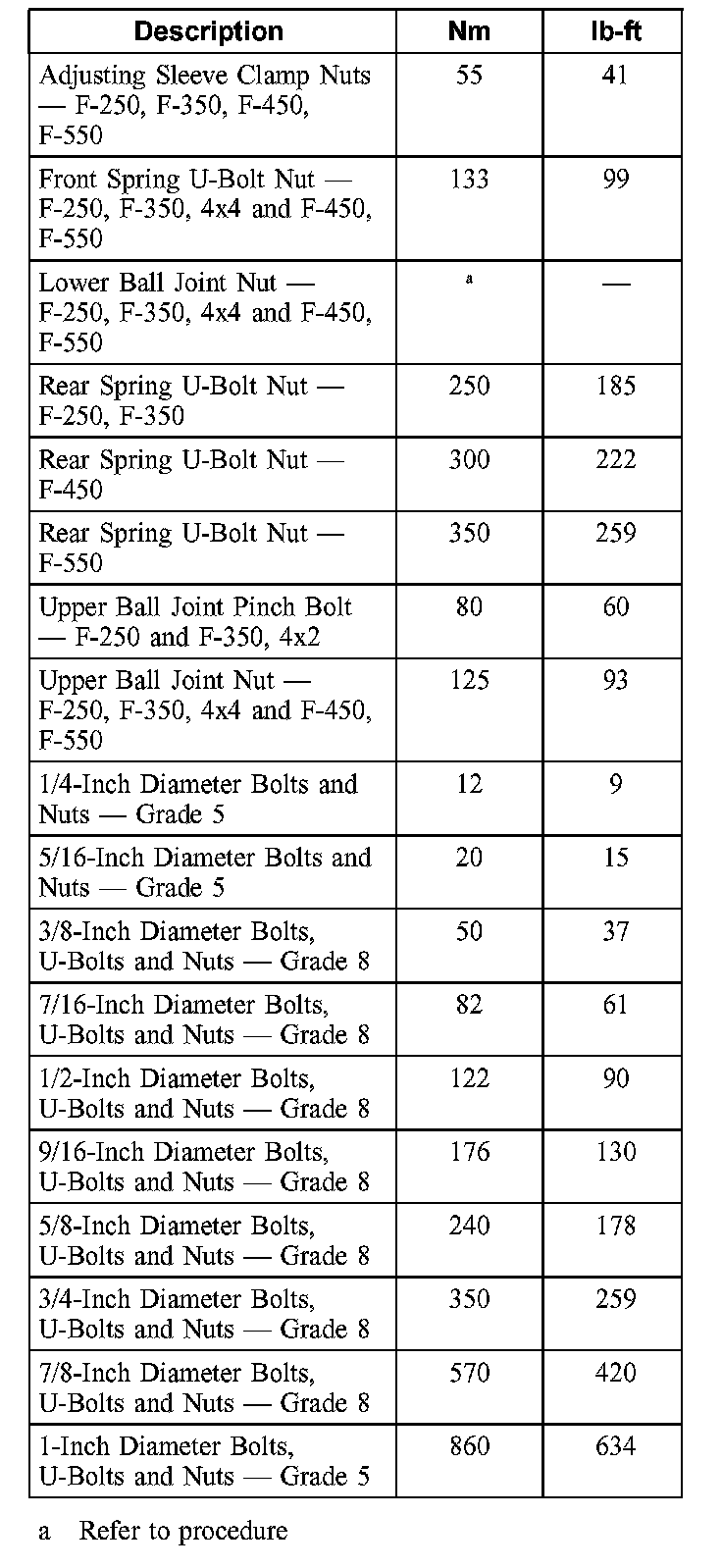 Torque Specifications: