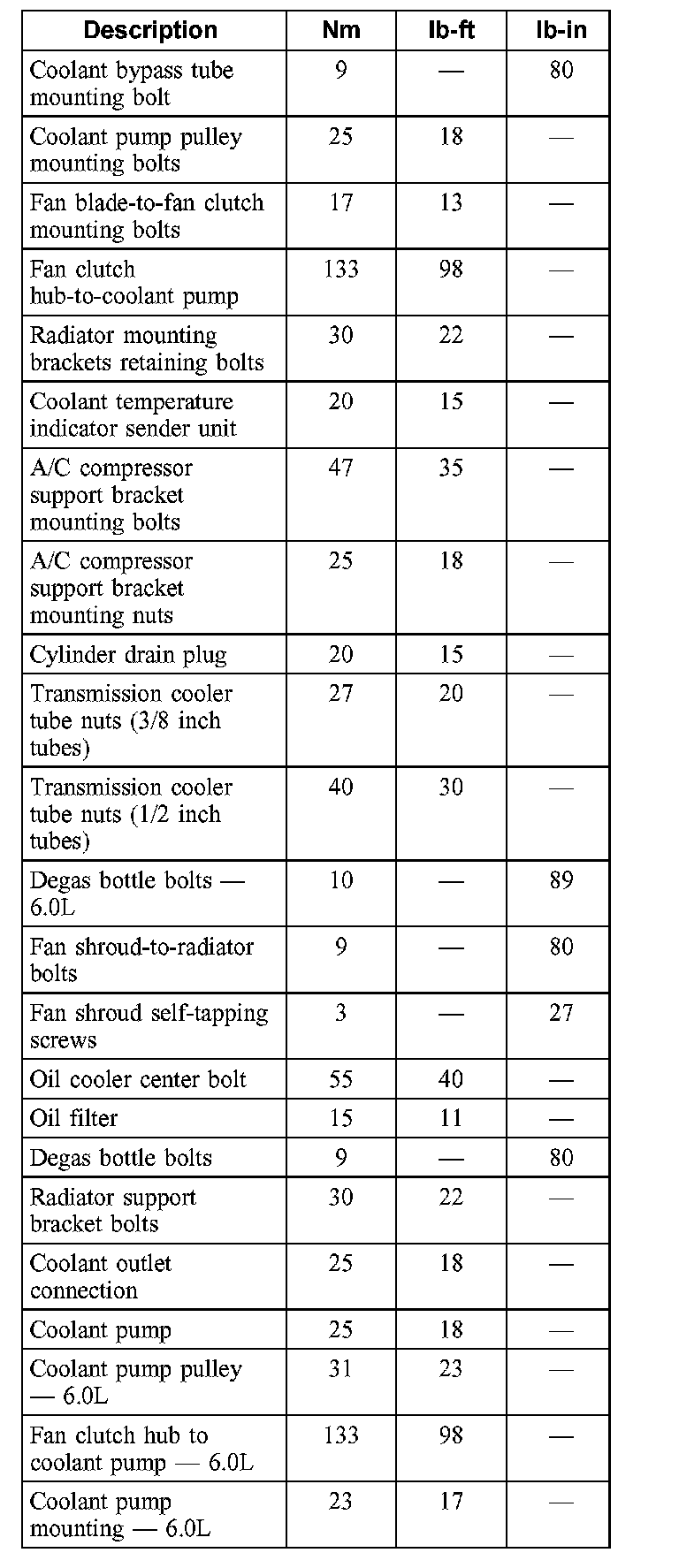 Torque Specifications