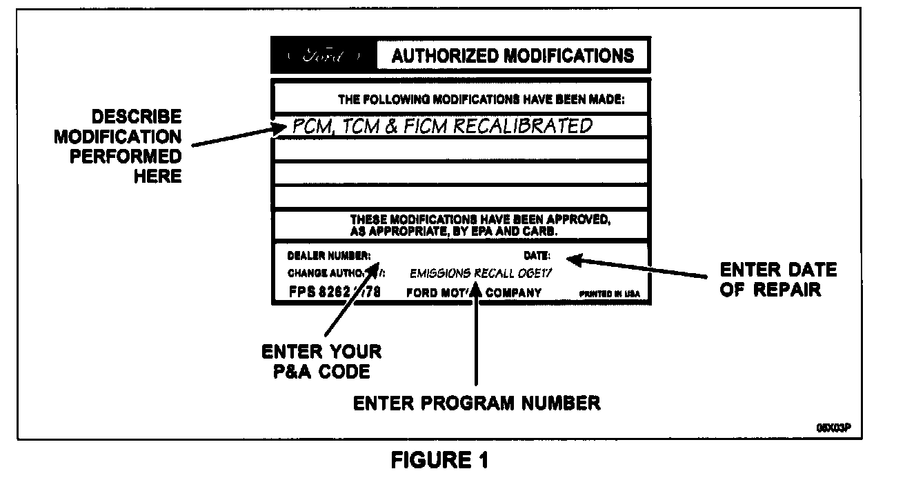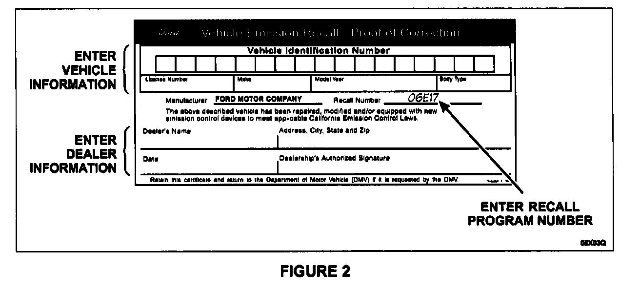 1. Provide the owners of vehicles registered in California and Massachusetts with a completed "Vehicle Emissions Recall - Proof of Correction" certificate. See Figure 2.