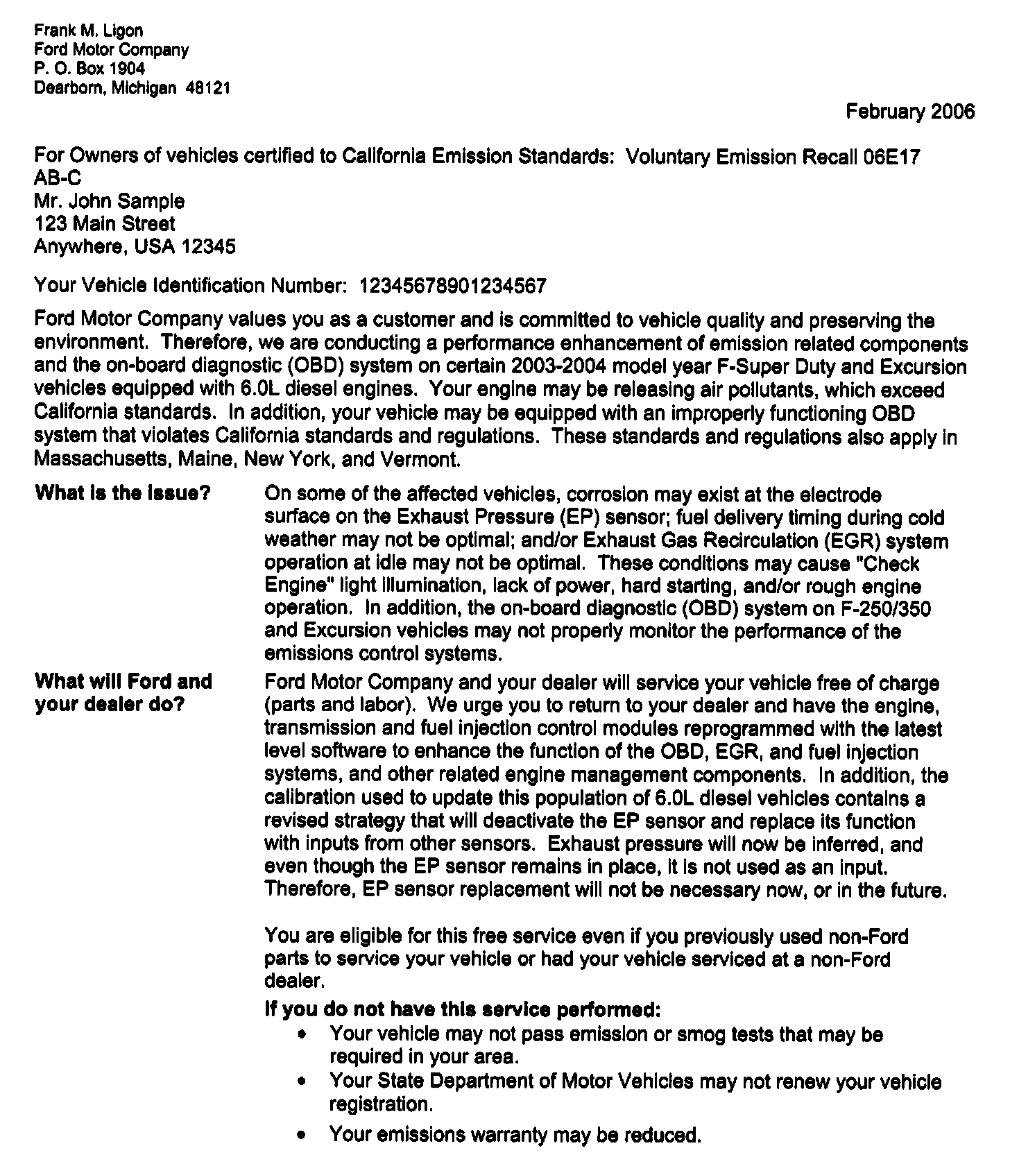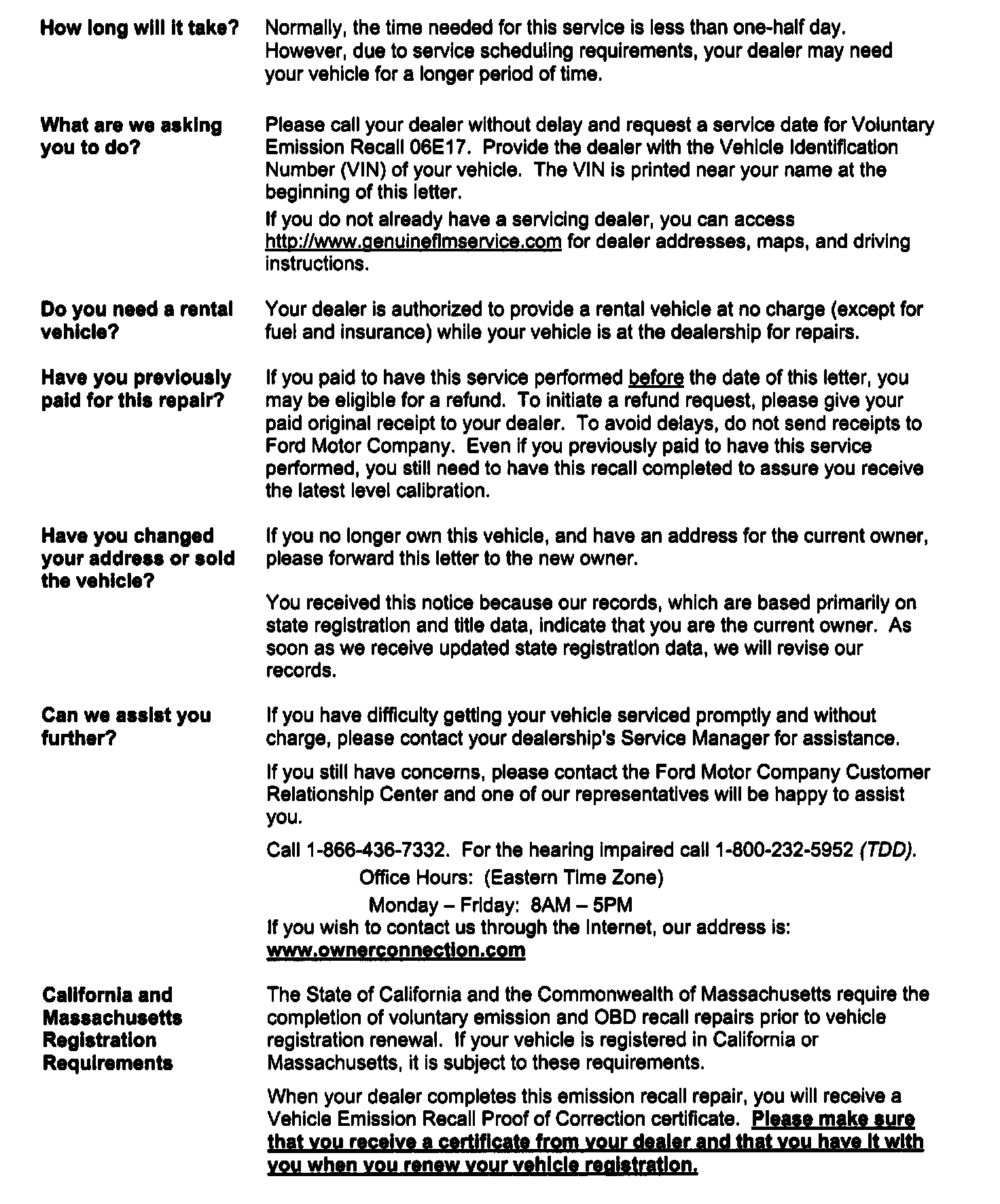 Recall - Module Reflash for OBD Improvements