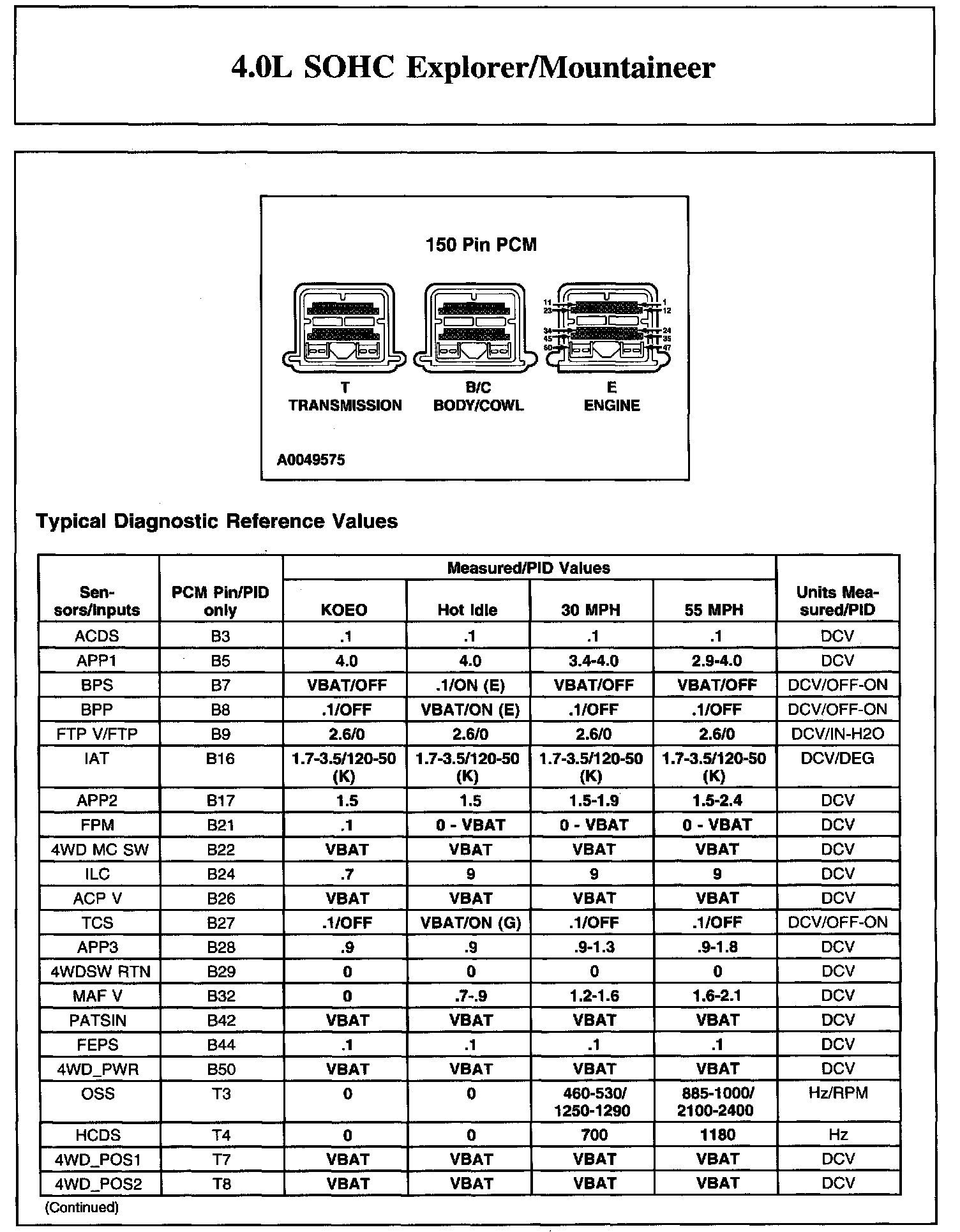 Home >> Ford >> 2004 >> Explorer 4WD V6-4.0L VIN E >> Repair and Diagnosis >> Powertrain Management >> Computers and Control Systems >> Testing and Inspection >> Scan Tool Testing and Procedures >> Reference Values >> Typical Diagnostic Reference Values