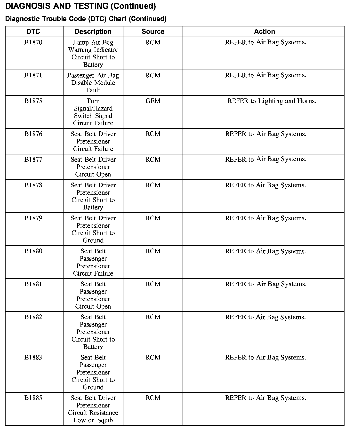 DIAGNOSTIC TROUBLE CODE (DTC) CHARTDTC Chart B1202 - B1204: