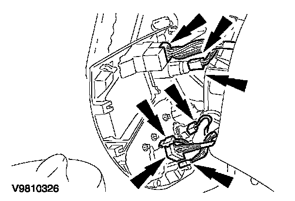 3. Pull the instrument panel console bezel forwards and disconnect the electrical connectors.