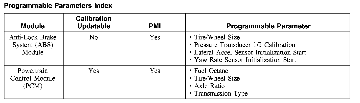 Programmable Parameters Index:
