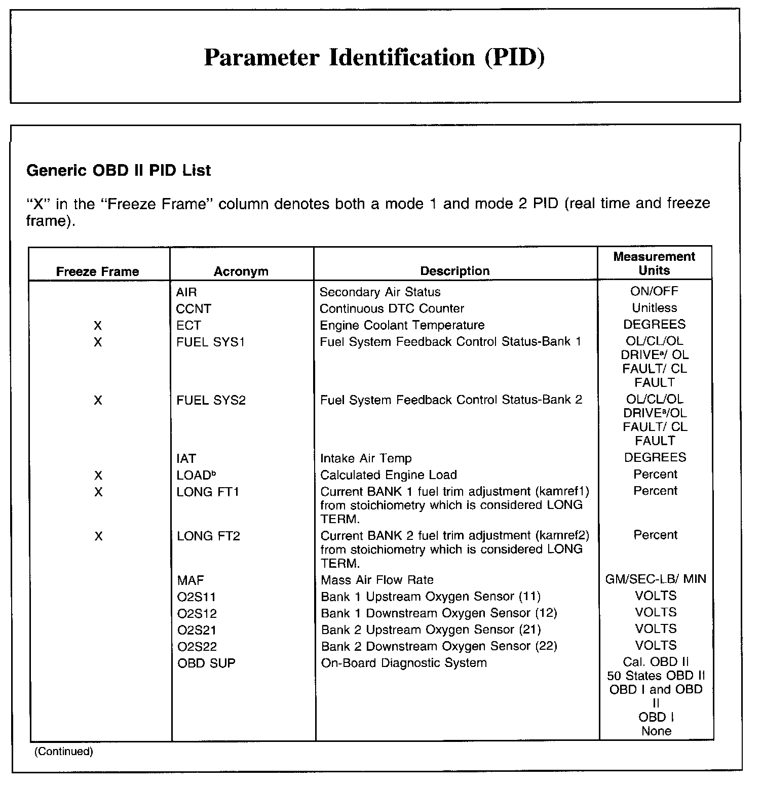 Generic OBD II PID List, Part 1: