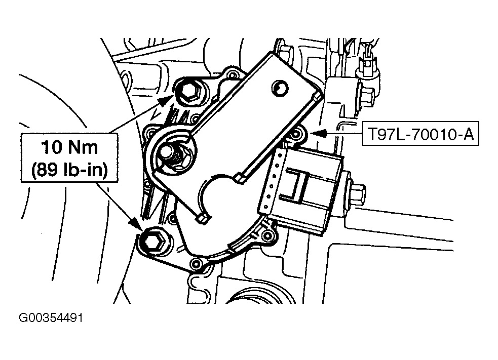 - Loosen DTR sensor bolts. Install DTR sensor Alignment Tool (T97L-70010-A). See Fig 1 . Tighten DTR sensor bolts to specification. Install manual control lever and nut, and torque to specification. See TORQUE SPECIFICATIONS . Reconnect DTR sensor connector, air cleaner assembly, and negative battery cable.