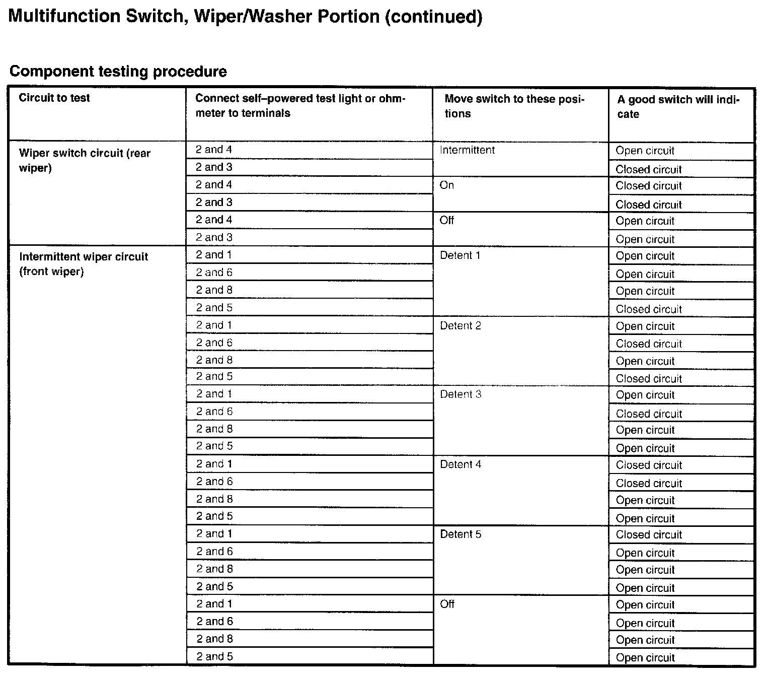 Main Relay (Computer/Fuel System): Testing and Inspection