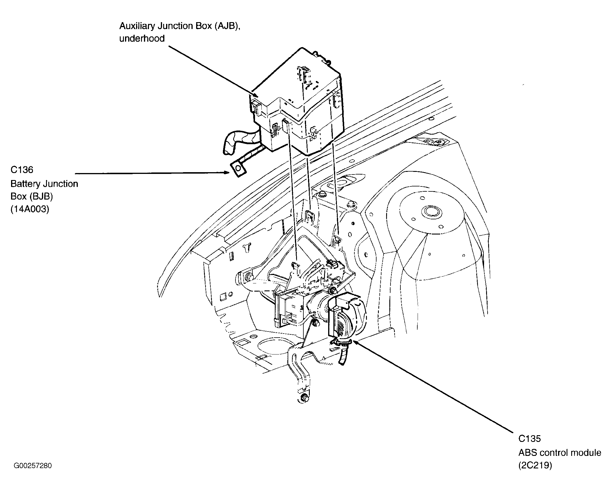 | Battery Junction Box | In luggage compartment, near battery. See Figure. |