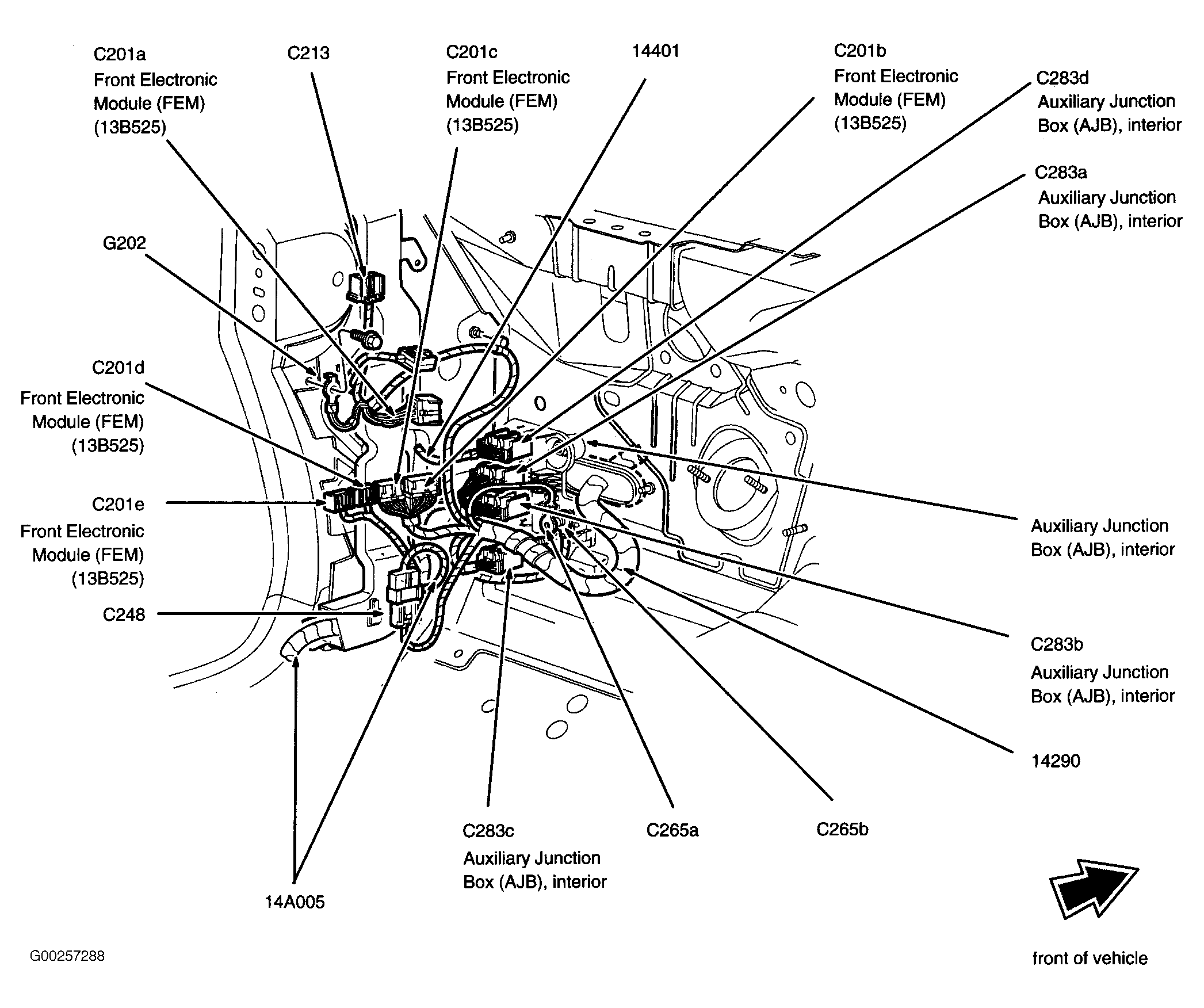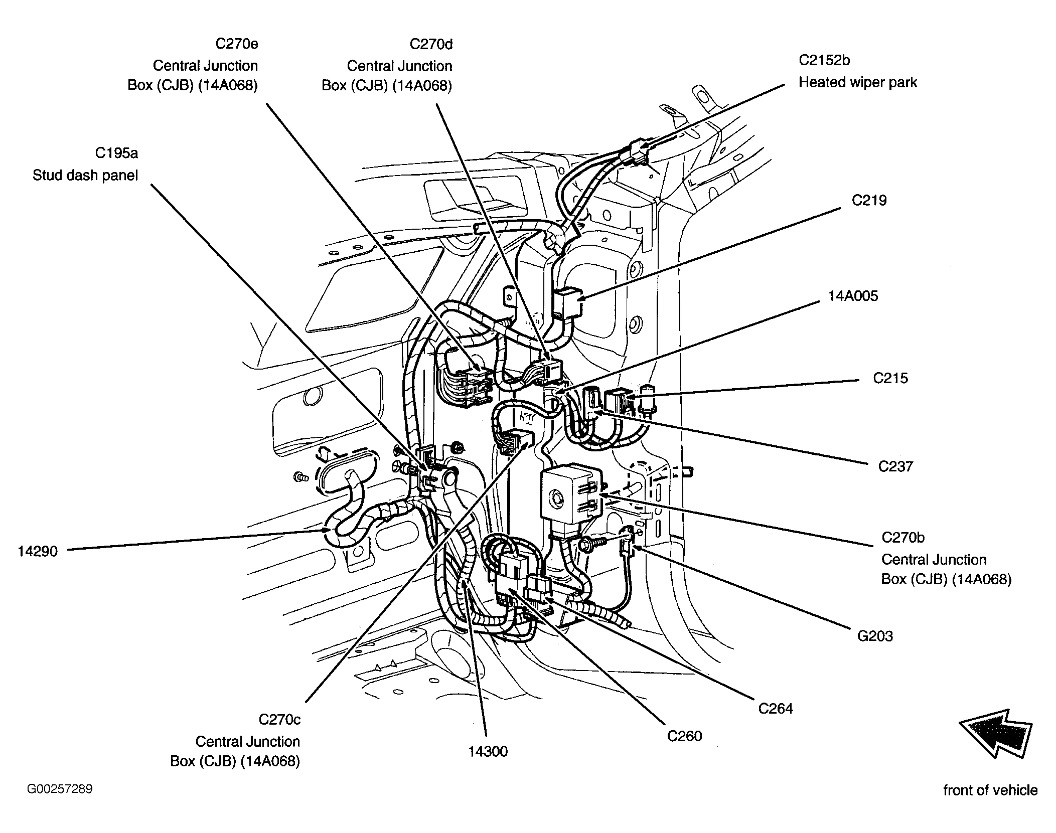 | Interior Auxiliary Junction Box | Under left side of dash. See Figure. |