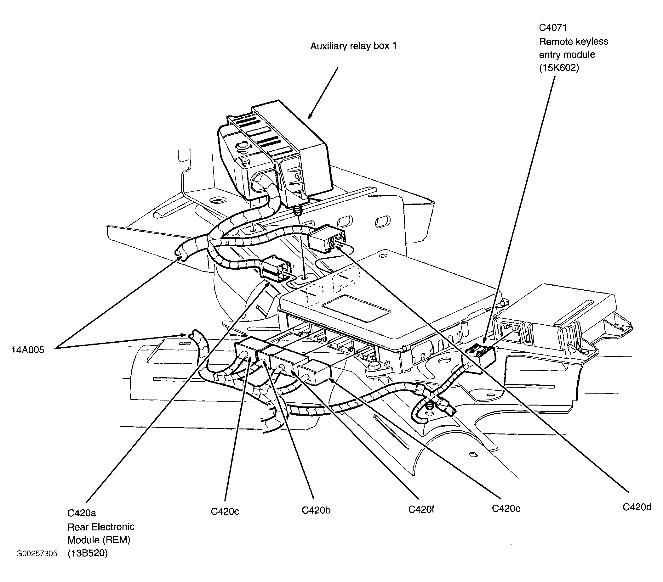 | Auxiliary Relay Box 1 | Behind seats, on vehicle crossbeam. See Figure. |