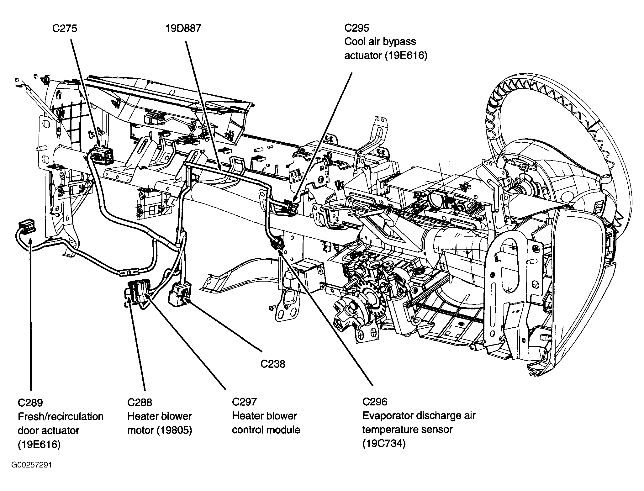 Heater Blower Control Module Behind left side of dash. See Figure.