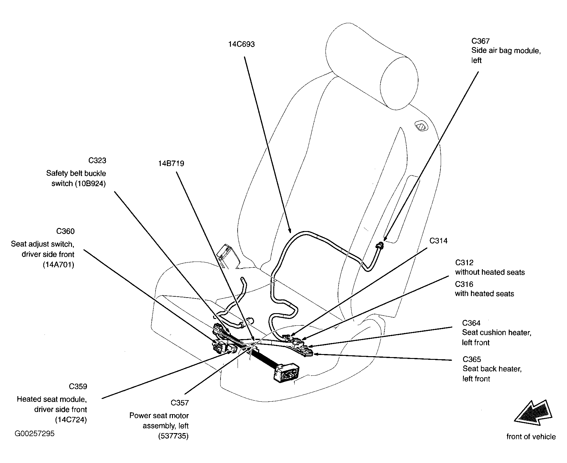 Front Heated Seat Module (Driver) Under driver seat. See Figure.