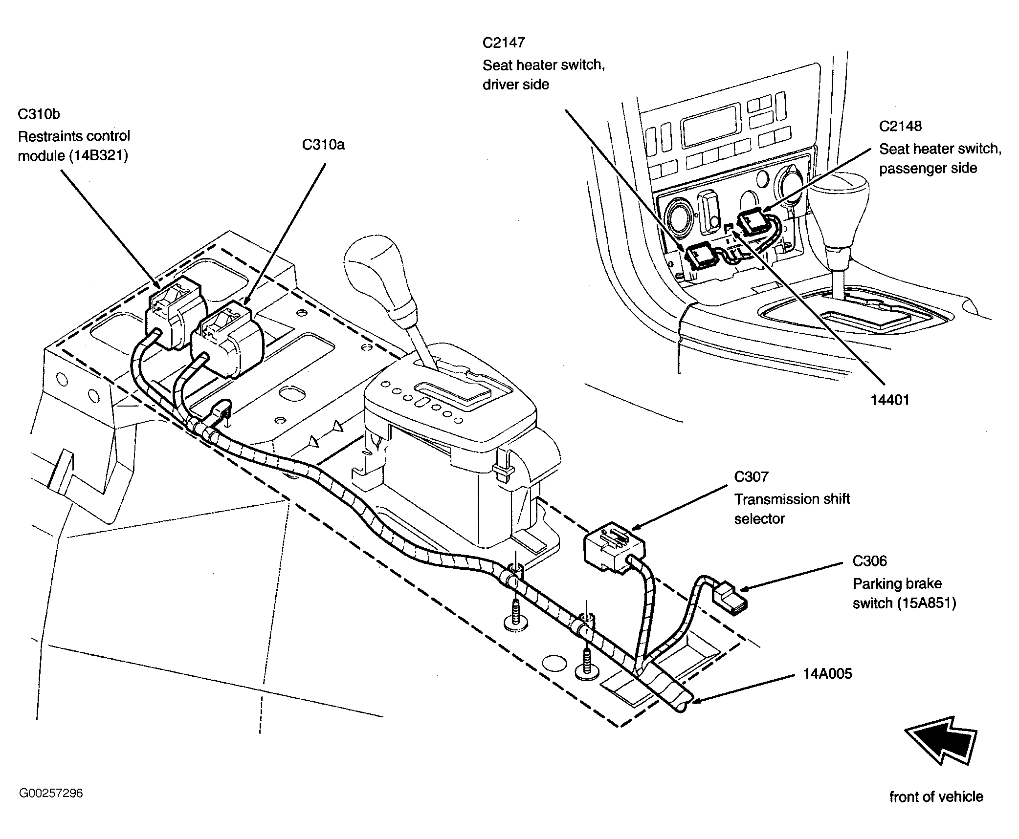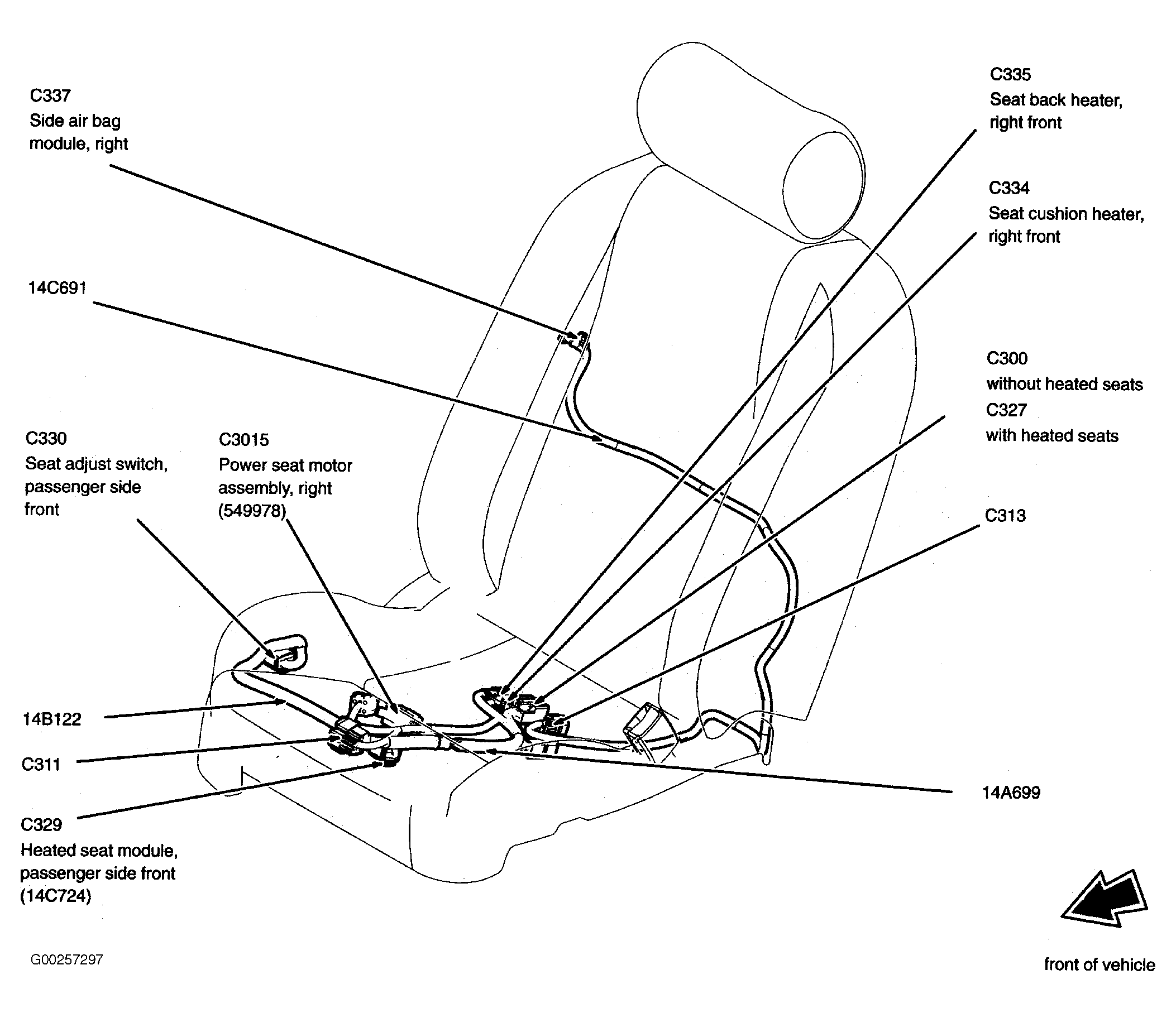 Front Heated Seat Module (Passenger) Under passenger seat. See Figure.
