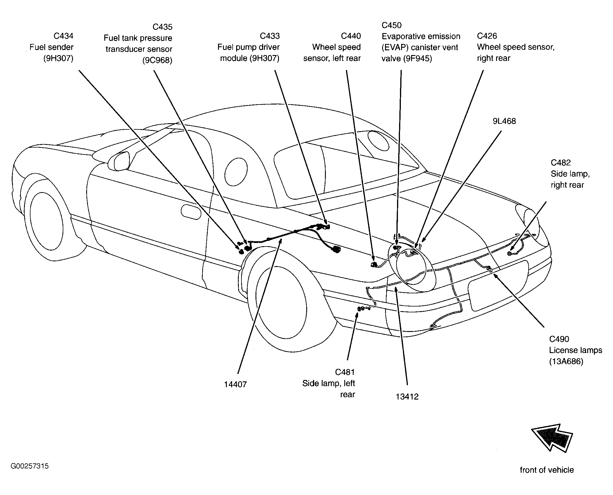 Fuel Pump Driver Module Under rear of vehicle. See Figure.