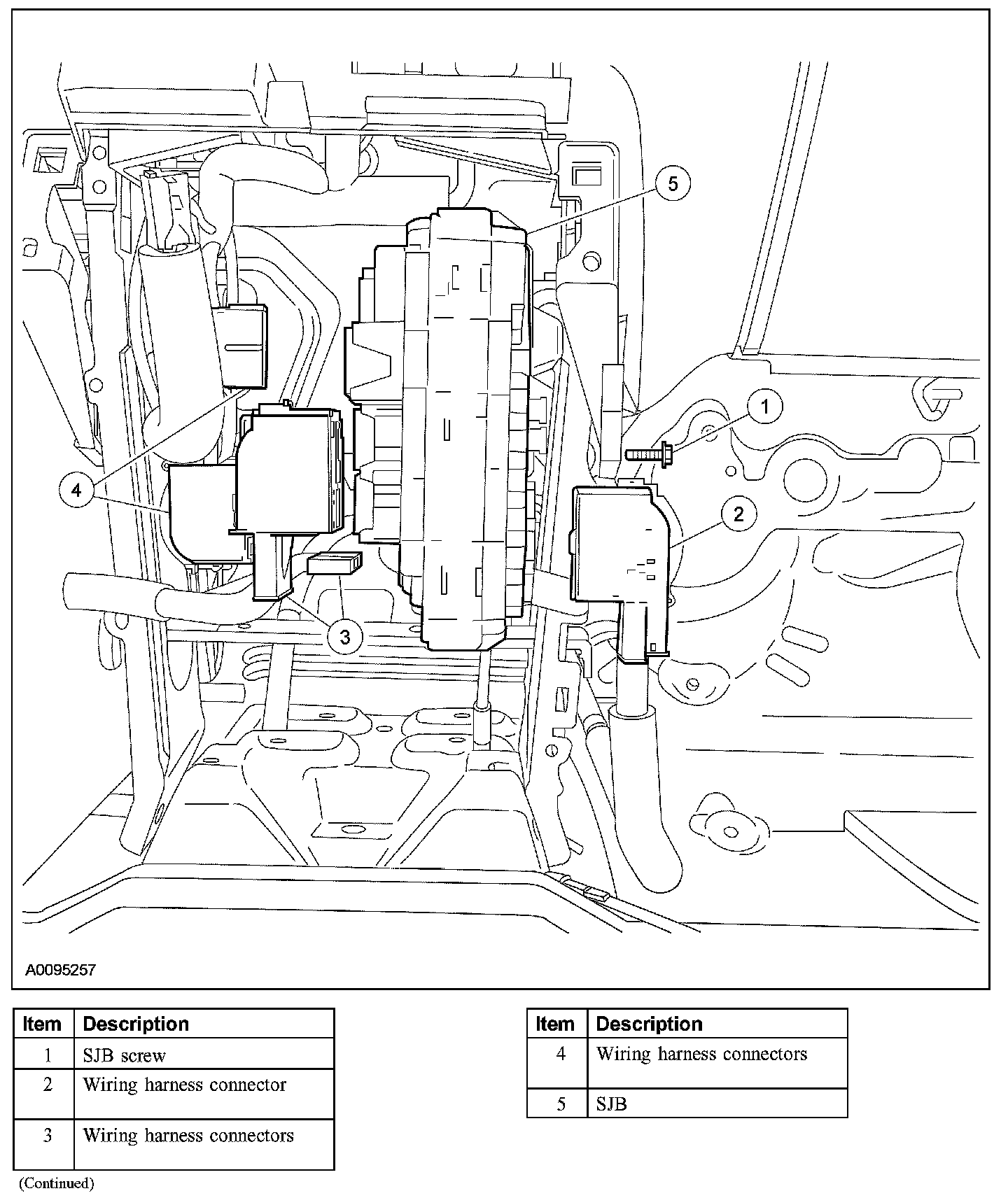 1. CAUTION: Prior to removal of the SJB, it is necessary to upload module configuration information to a diagnostic tool. This information needs to be downloaded into the new module once installed.