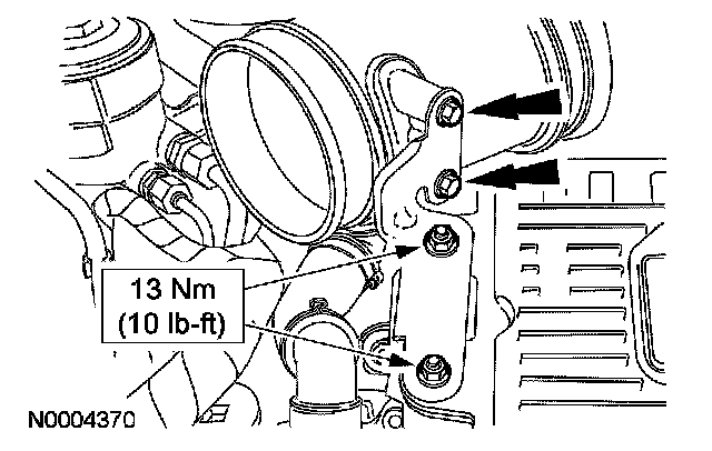 7. Remove the two bolts, two nuts and turbocharger intake tube bracket.