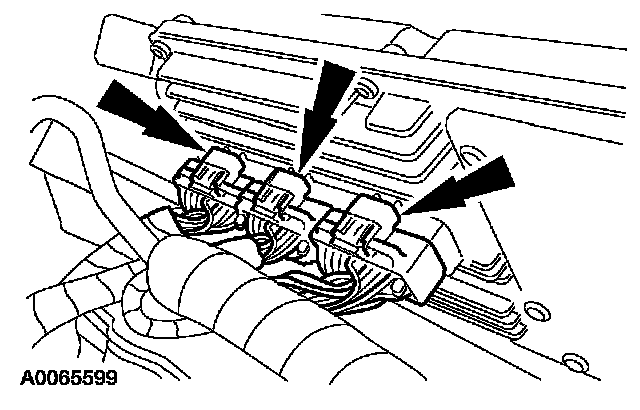 9. CAUTION: Make sure both latches are released before removing the electrical connectors or engine damage can occur.