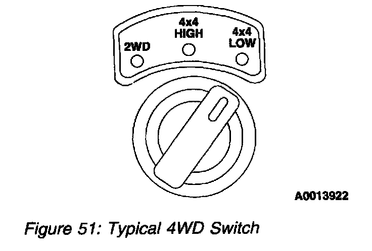 The 4WD control module provides the PCM with an indication of 4WD Low. This input is used to adjust the shift schedule. A 5.0-volt module pull-up indicates 4WD High or 2WD.
