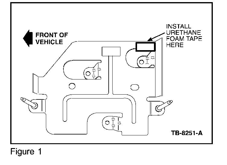 2. Obtain a piece of urethane foam tape (164-R4902), approximate size 5/8 x 1-1/4" (16 x 32 mm) from the Rotunda Squeak and Rattle Repair Kit (164-R4900).
