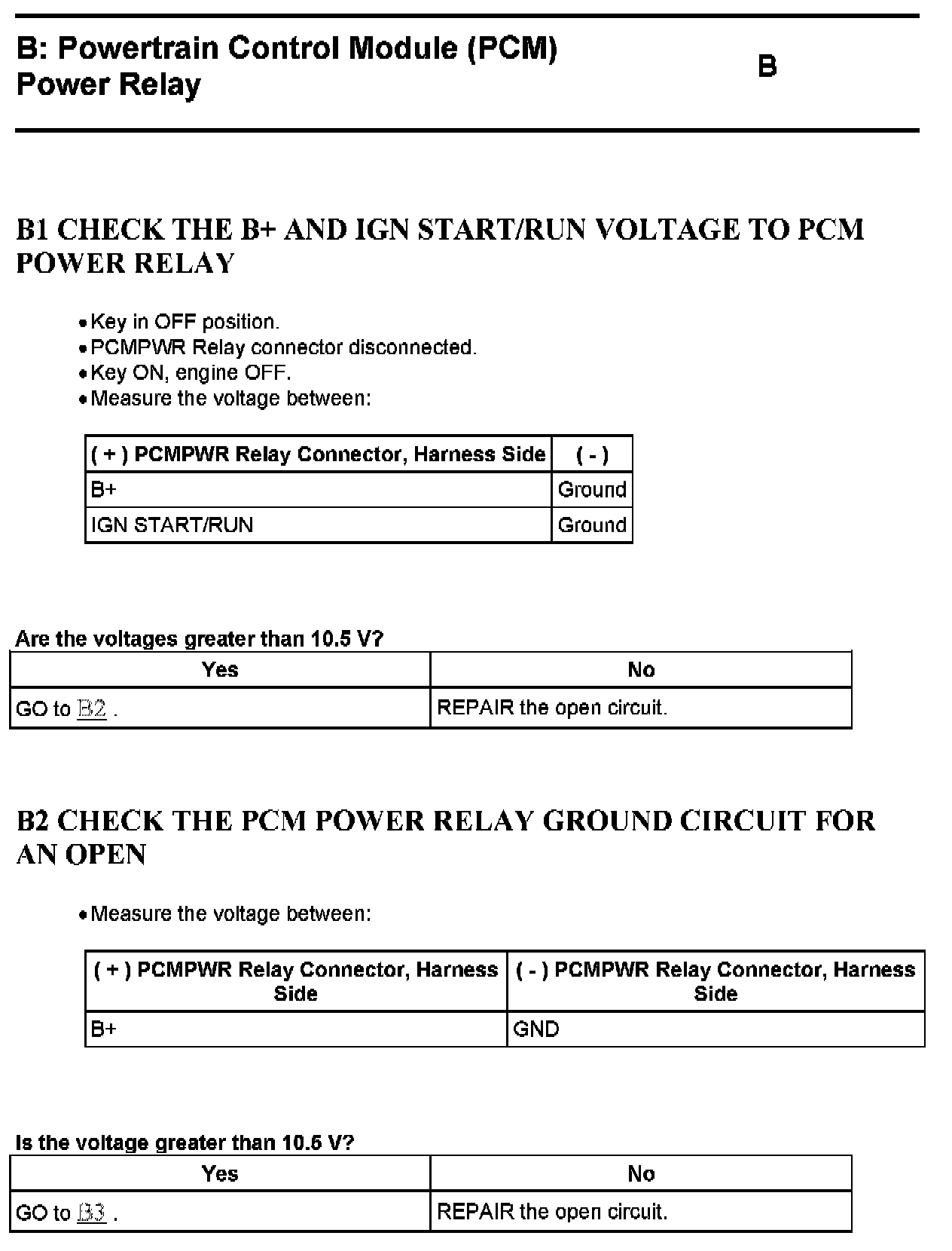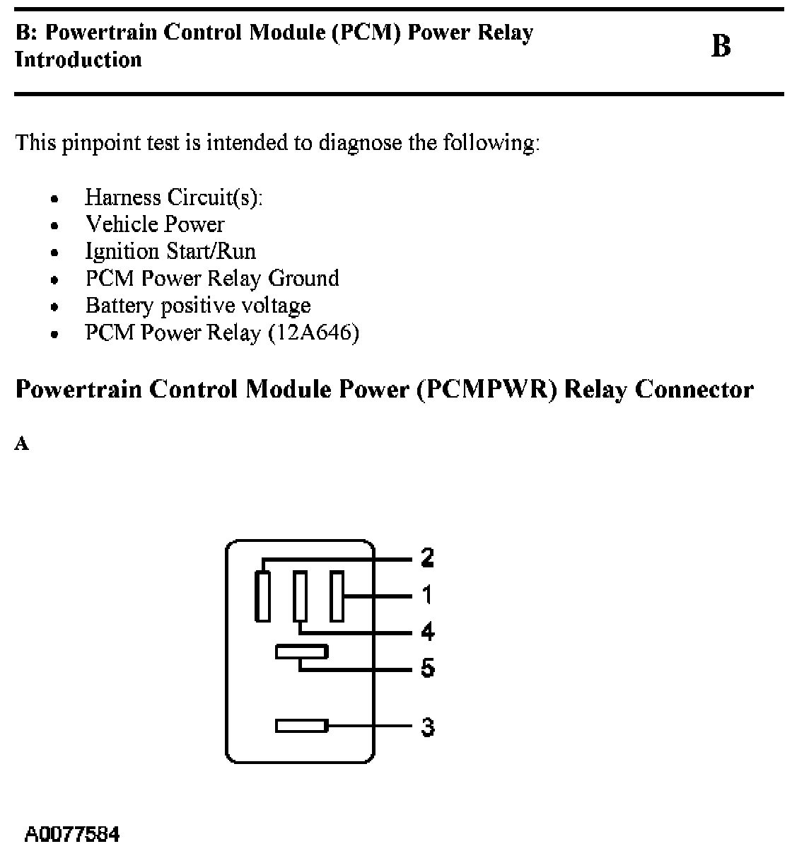 PINPOINT TEST B: POWERTRAIN CONTROL MODULE (PCM) POWER RELAY