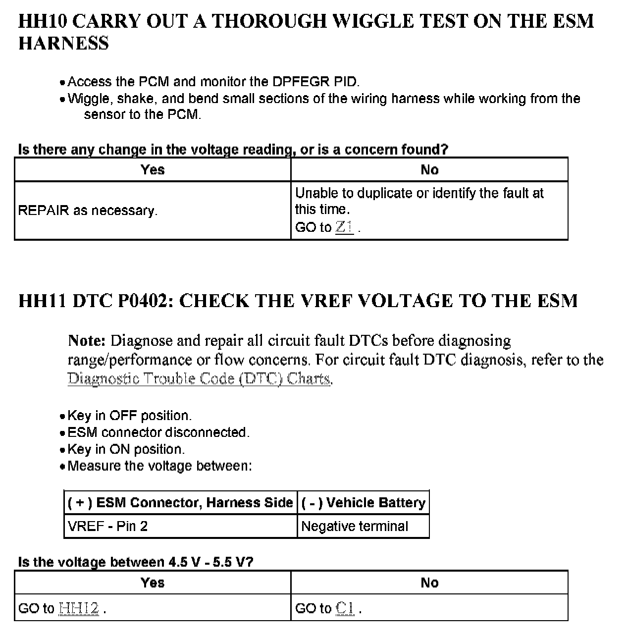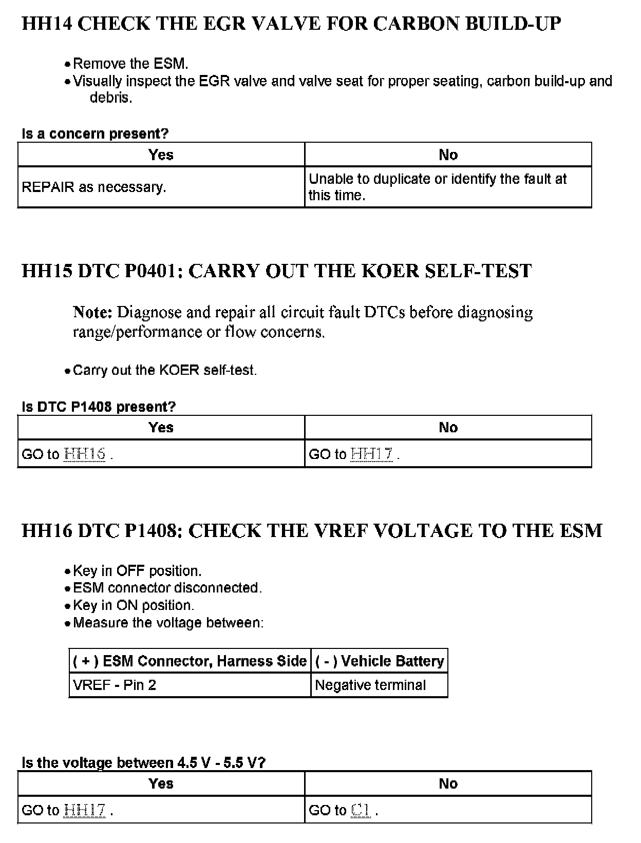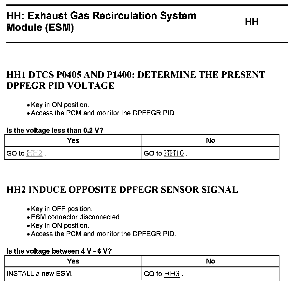 Home >> Ford >> 2005 >> Focus L4-2.3L VIN Z >> Repair and Diagnosis >> Powertrain Management >> Computers and Control Systems >> Testing and Inspection >> Pinpoint Tests >> Tests HH: Exhaust Gas Recirculation System Module (ESM)