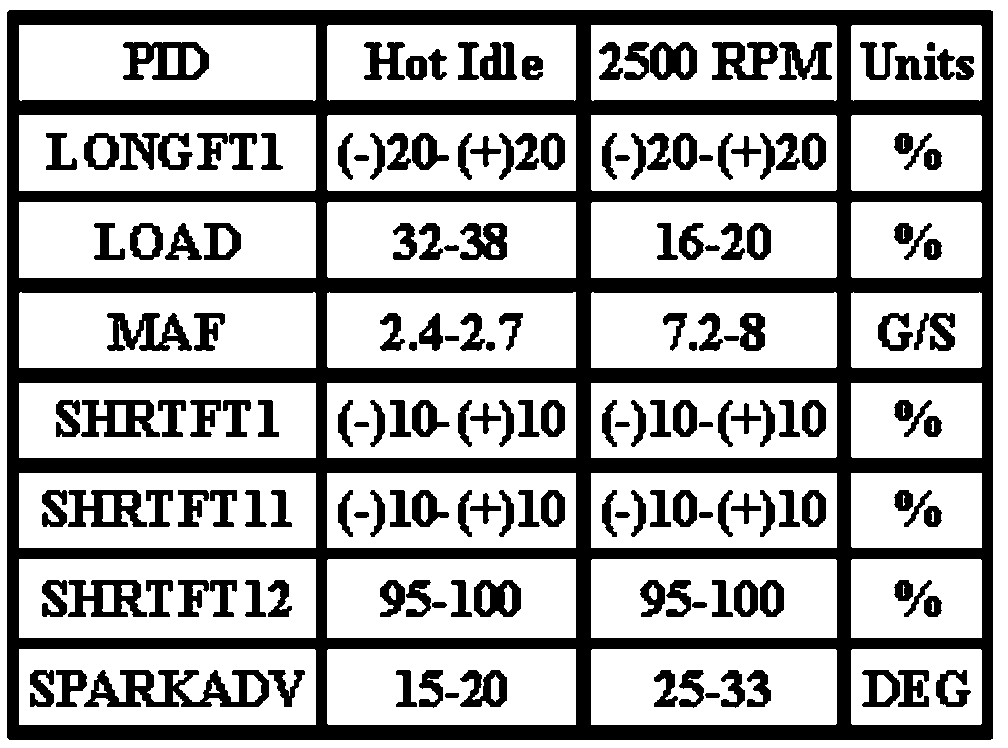 Note: All generic OBD readings under no load (PARK or NEUTRAL).