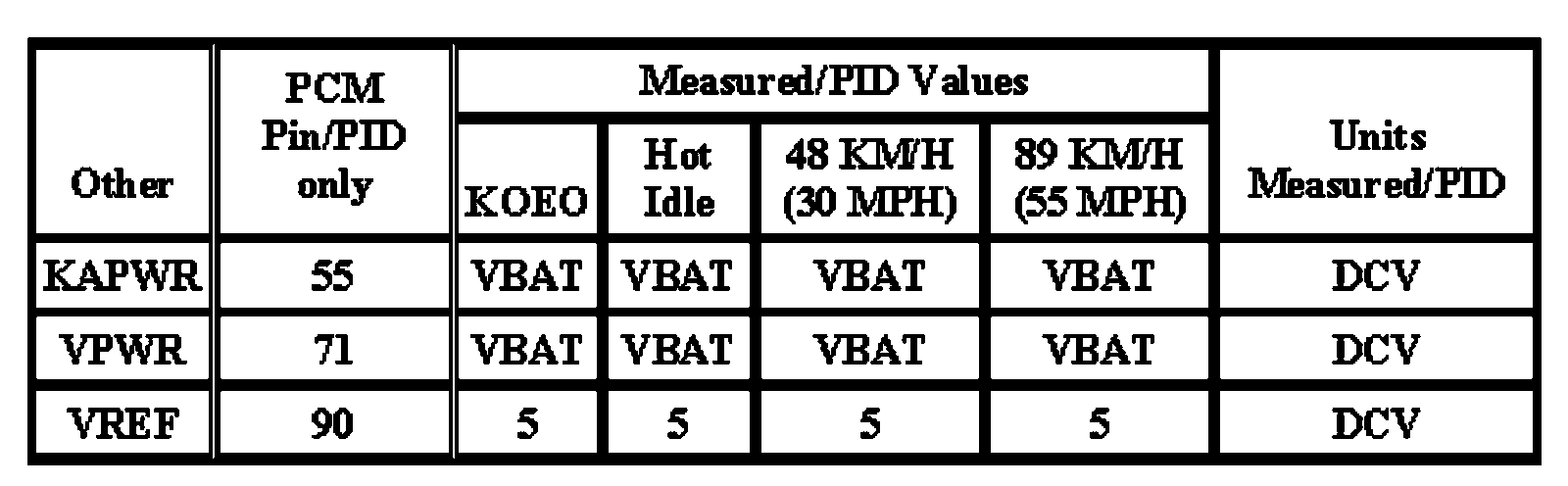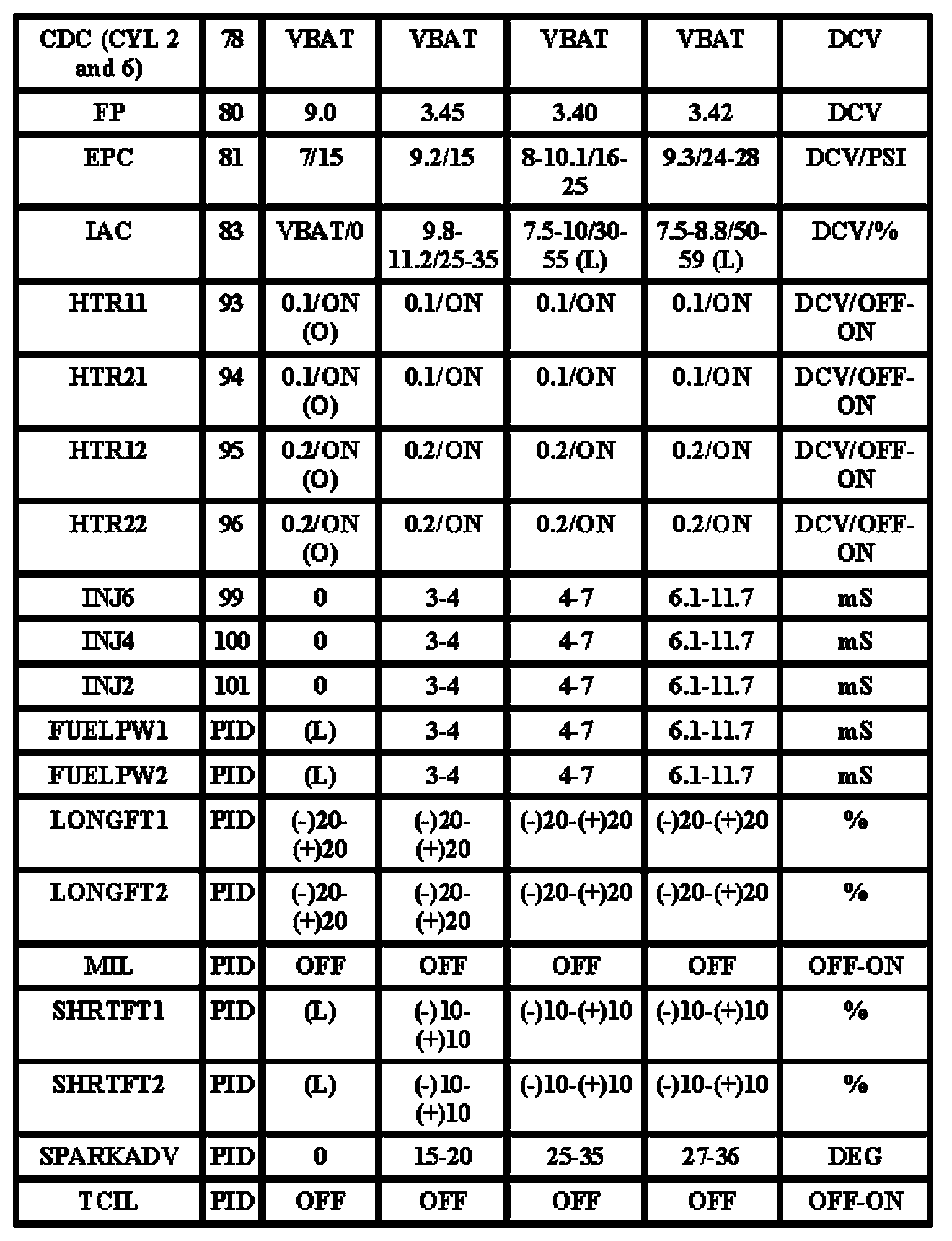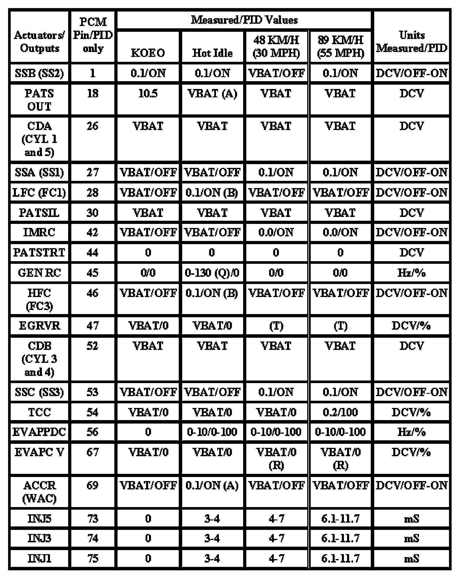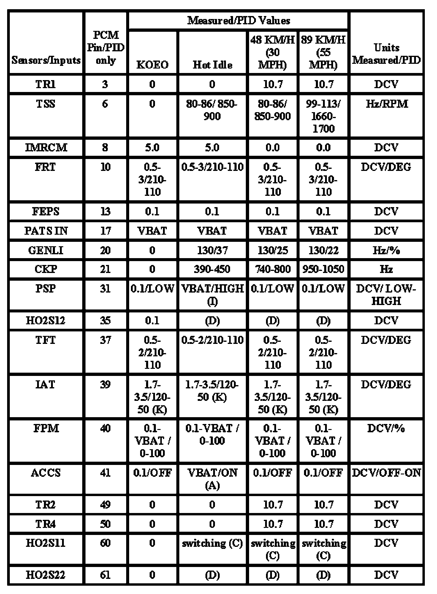 Note: All generic OBD readings under no load (PARK or NEUTRAL).