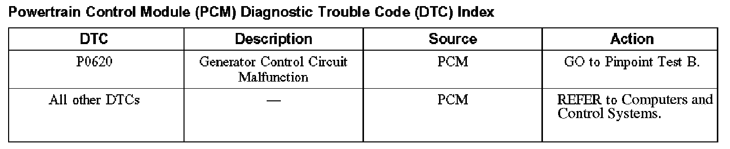 Powertrain Control Module (PCM) Diagnostic Trouble Code (DTC) Index
