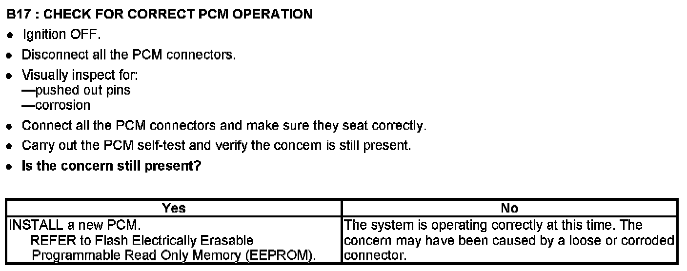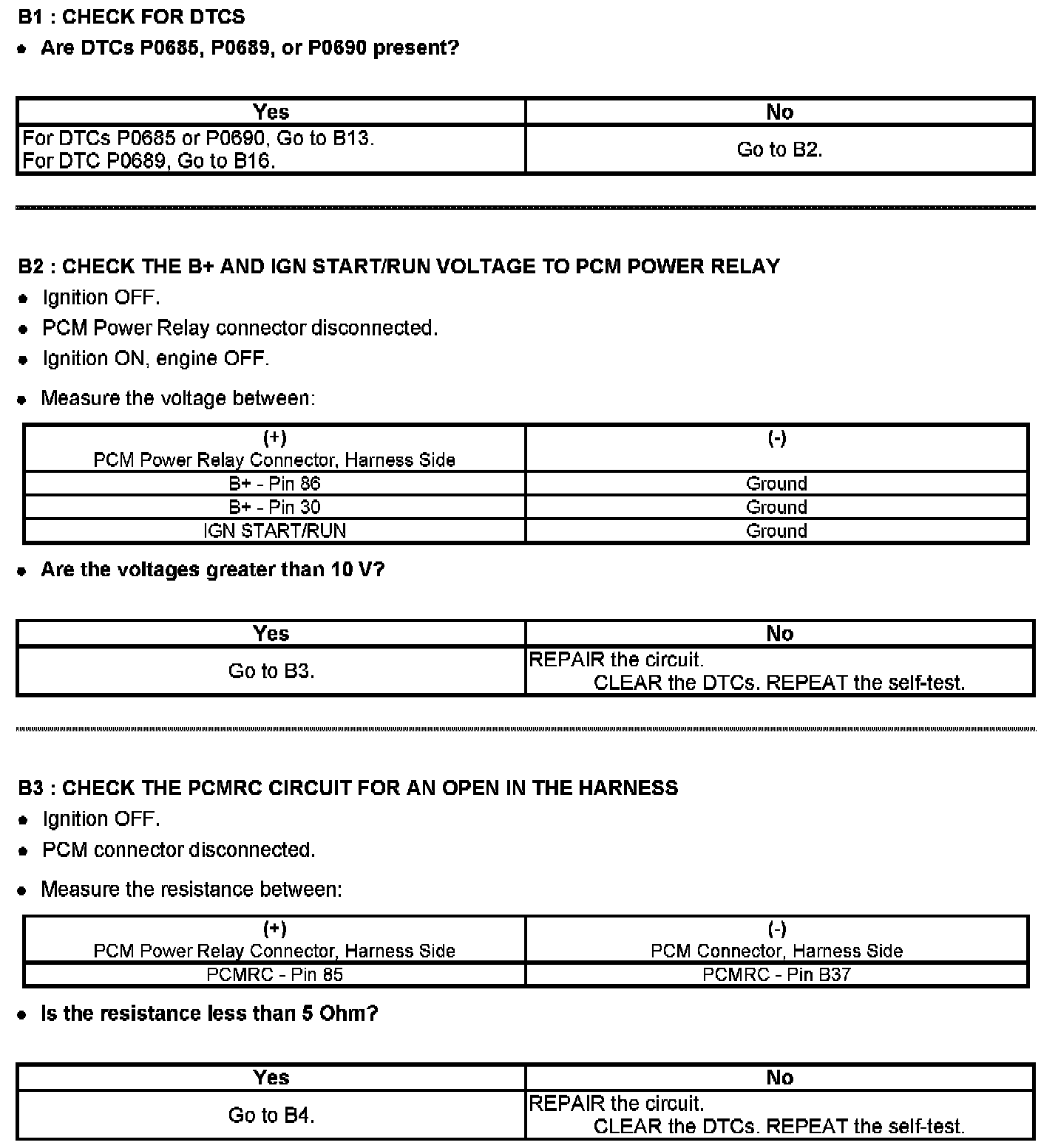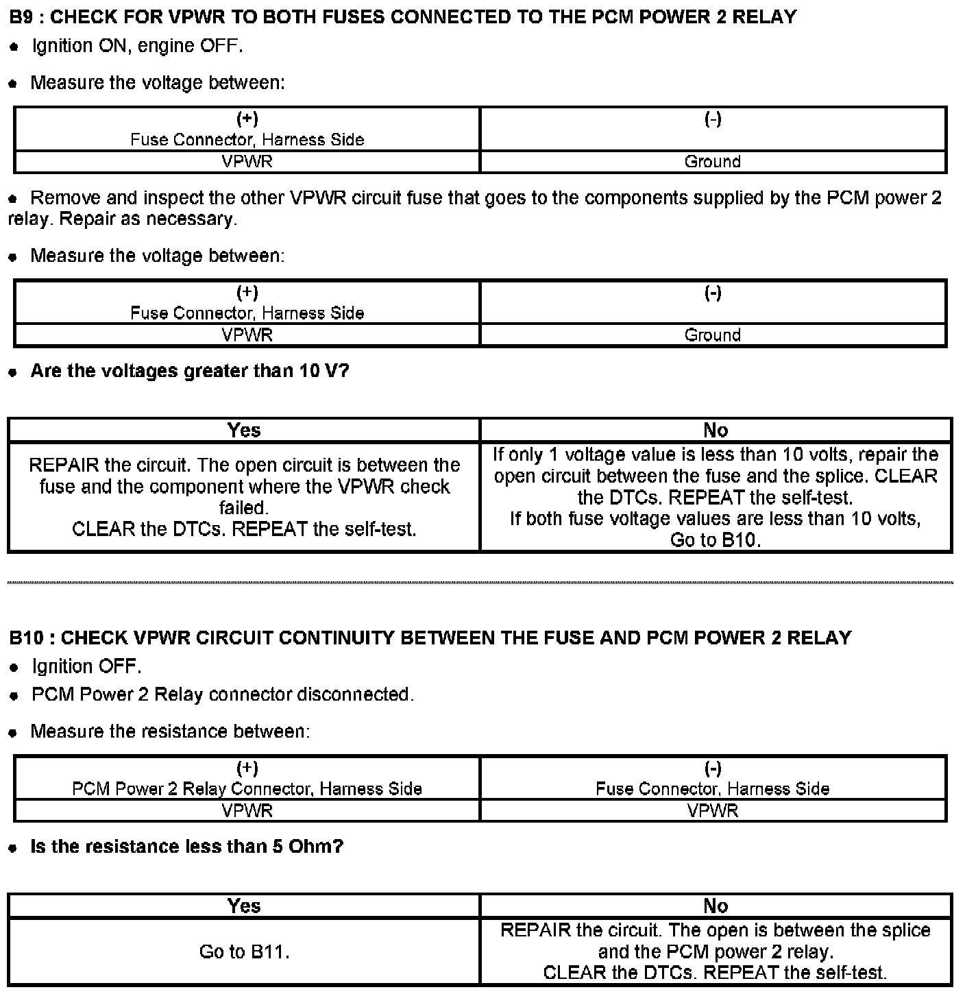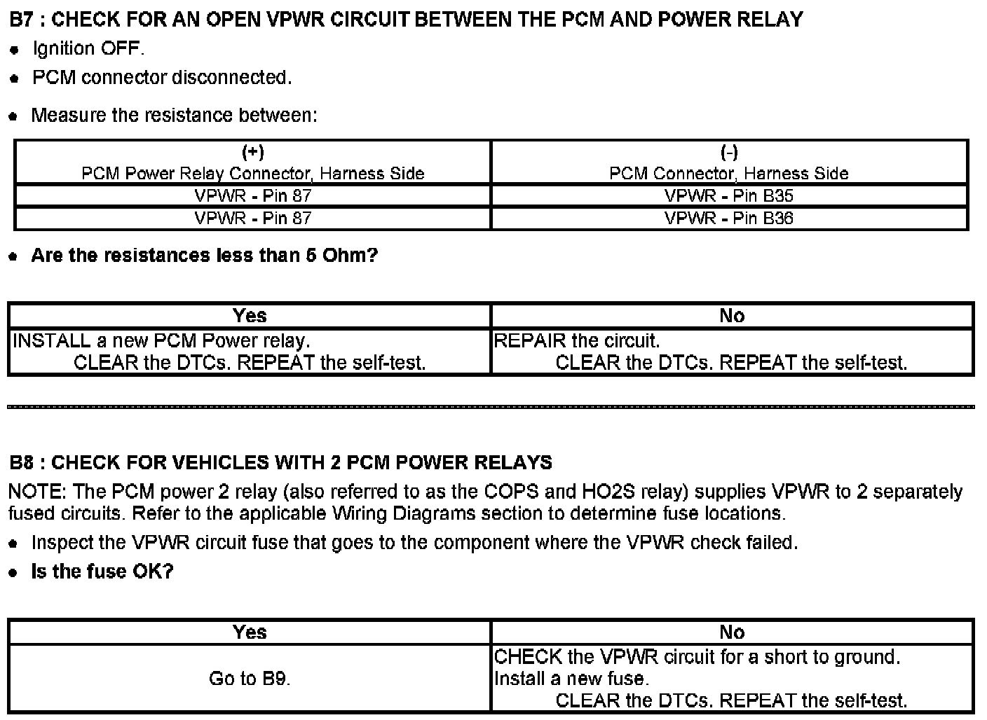 Home >> Ford >> 2006 >> Freestar V6-4.2L VIN 2 >> Repair and Diagnosis >> Powertrain Management >> Computers and Control Systems >> Testing and Inspection >> Pinpoint Tests >> Test B: Powertrain Control Module (PCM) Power Relay
