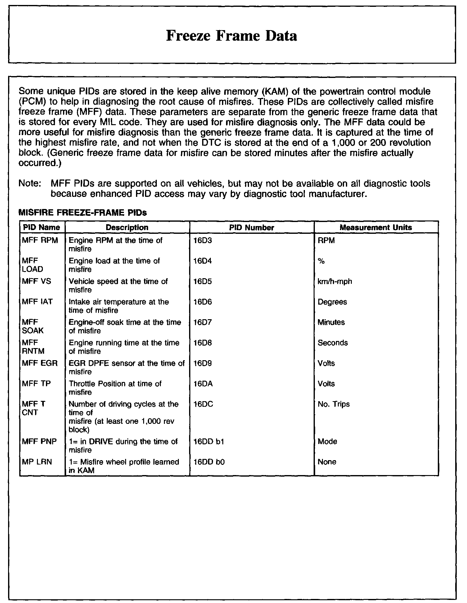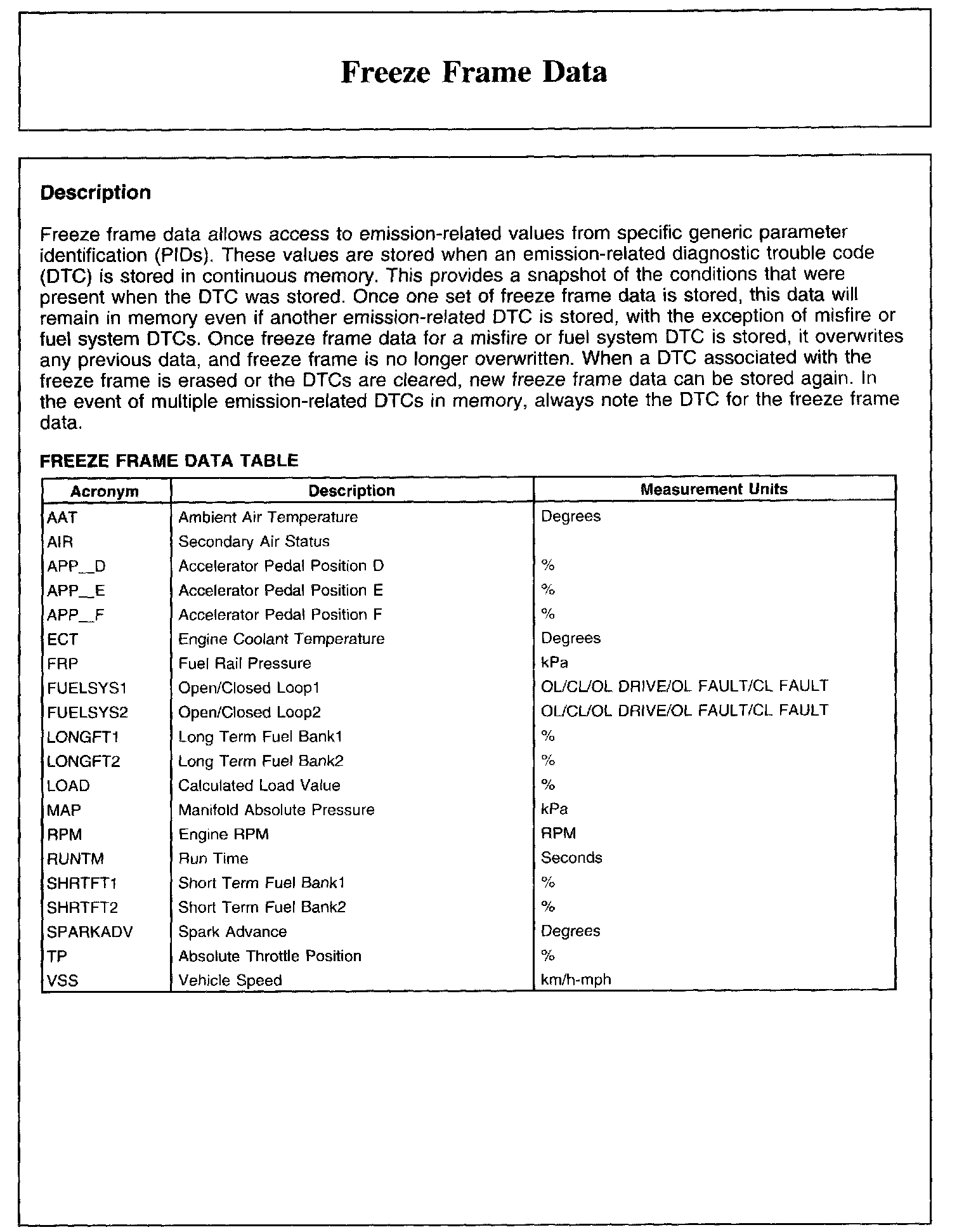 Freeze Frame Data