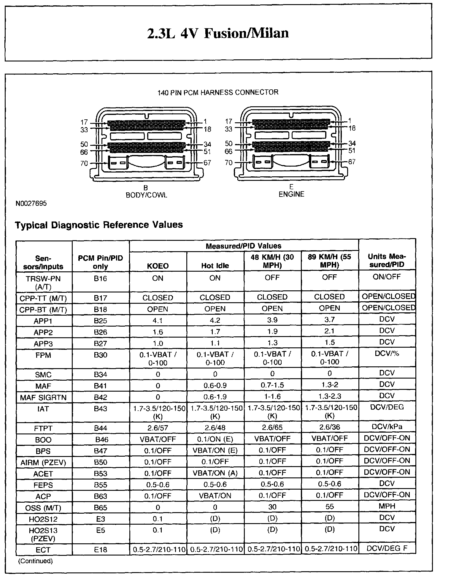 Home >> Ford >> 2006 >> Fusion L4-2.3L VIN Z >> Repair and Diagnosis >> Powertrain Management >> Computers and Control Systems >> Testing and Inspection >> Scan Tool Testing and Procedures >> Typical Diagnostic Reference Values
