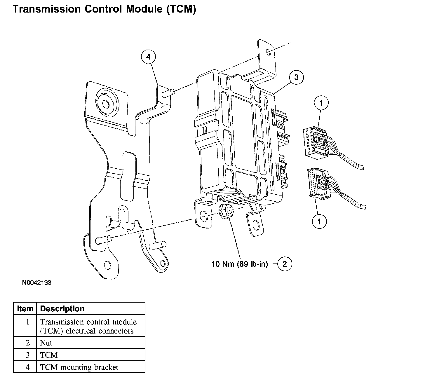 1. NOTE: The transmission control module (TCM) is located under the LH side of the instrument panel.