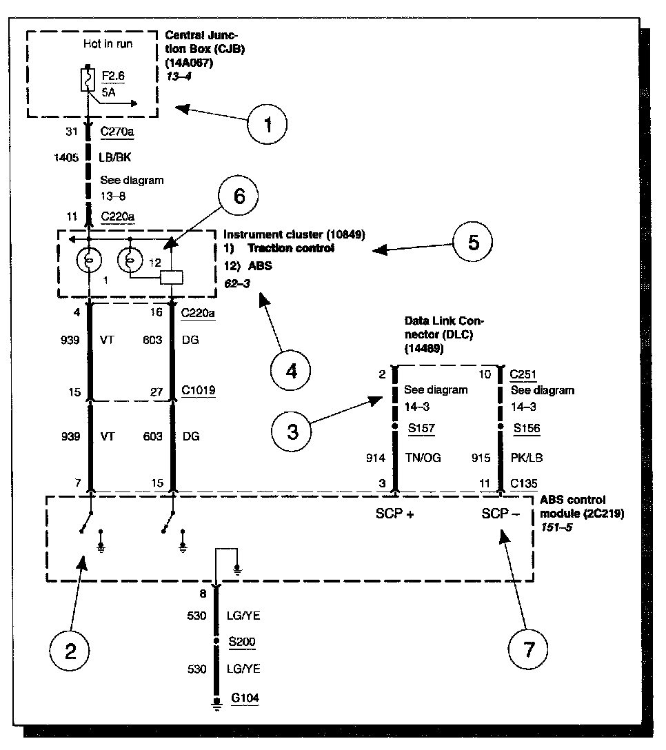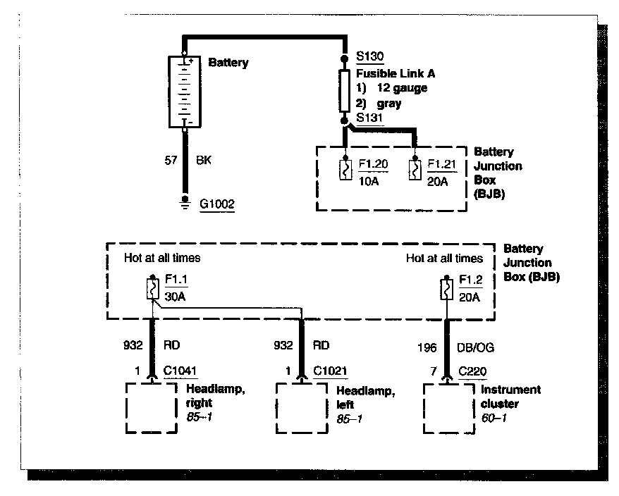 Each set normally starts with the component that powers the circuit, such as a fuse or the ignition switch. Current flow is shown from the power source at the top of the diagram to ground at the bottom of the diagram. In order to concentrate on the essential parts, power supply and ground connections are sometimes simplified by a dashed line in the diagrams. A full representation of the power supply of a fuse or the power distribution from a fuse to various components is given in the Power and Ground Distribution Diagrams. Full representation of the ground connections are shown in the Power and Ground Distribution Diagrams.