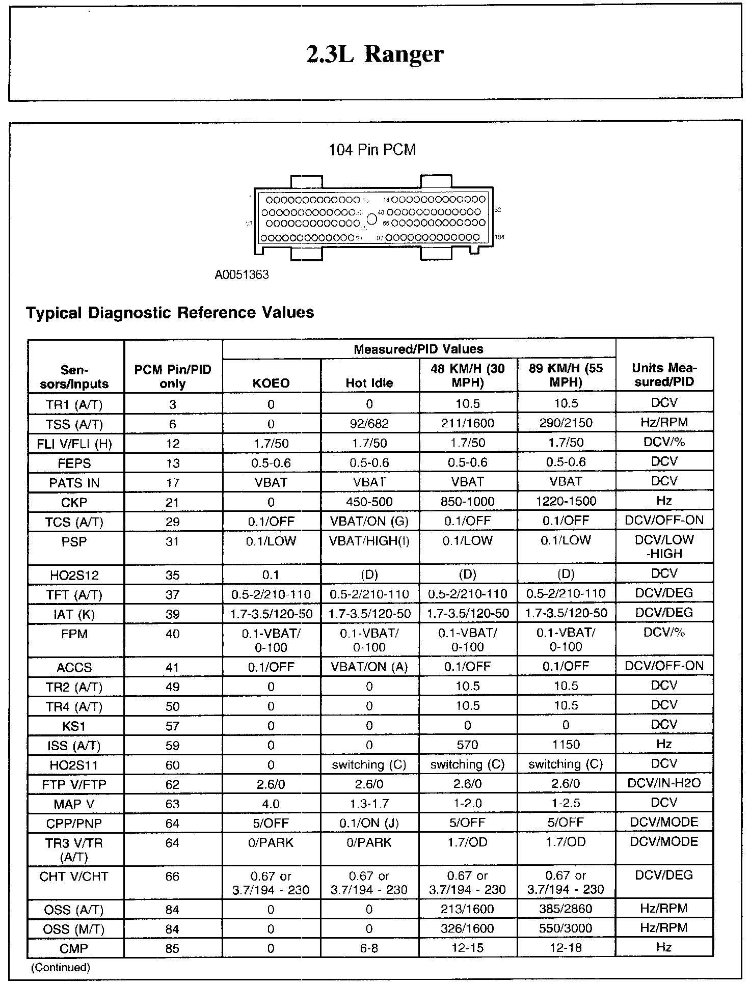 Home >> Ford >> 2006 >> Ranger 2WD L4-2.3L VIN D >> Repair and Diagnosis >> Powertrain Management >> Computers and Control Systems >> Testing and Inspection >> Scan Tool Testing and Procedures >> Typical Diagnostic Reference Values