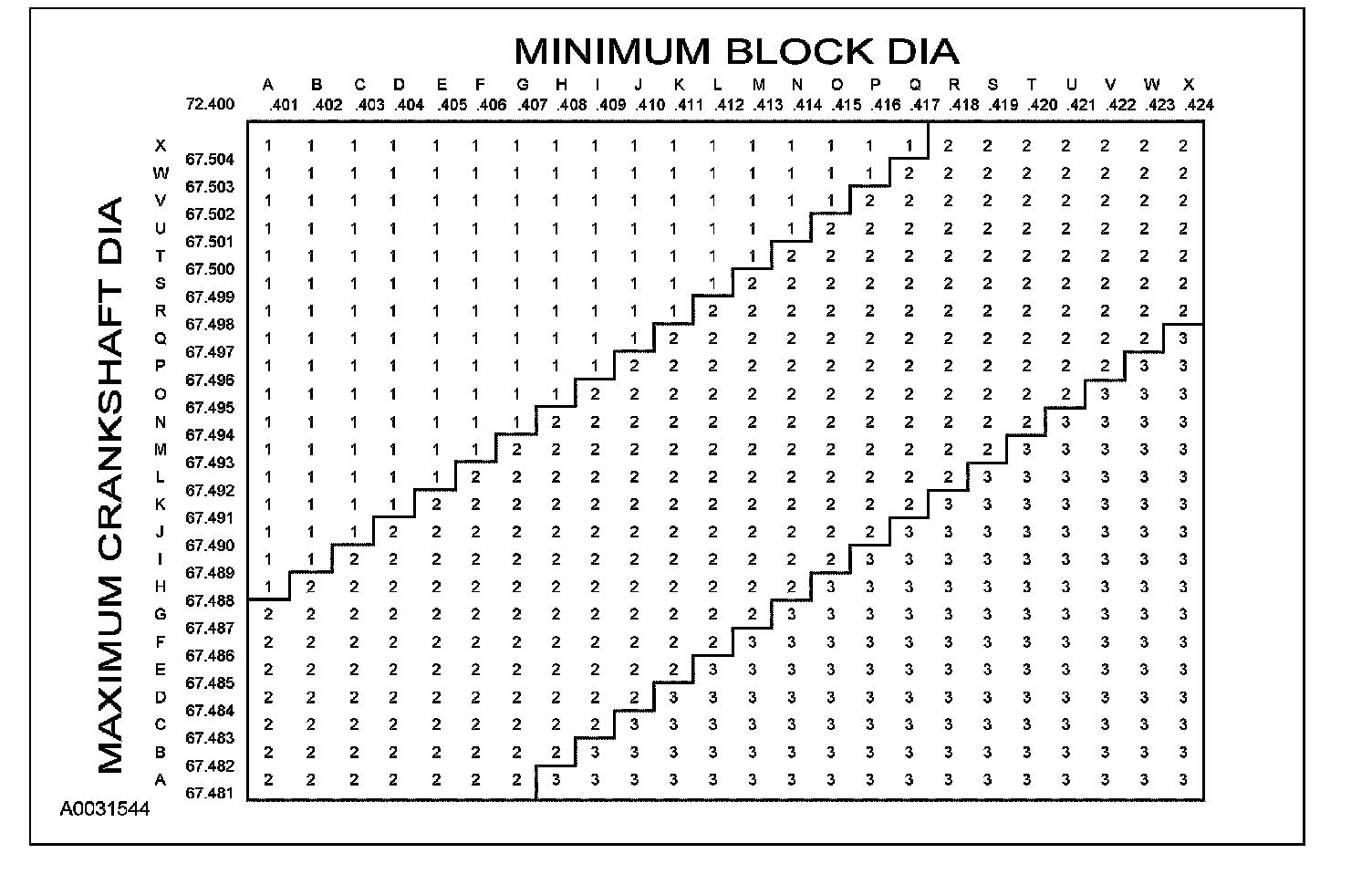 Main Bearing Size Codes