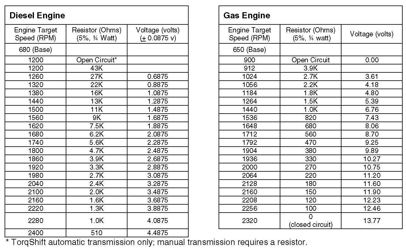 - If there is a high electrical demand on the chassis battery, such as from aftermarket inverters or generators, etc., the actual elevated idle engine speed may vary with that demand for any given resistance in the SEIC circuit. More so for gas engine systems than diesel since gas engine uses chassis battery voltage as a reference.