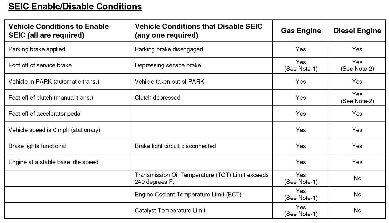 Note-2: SEIC is automatically re-activated after approximately 3 seconds after the disabling condition is removed.
