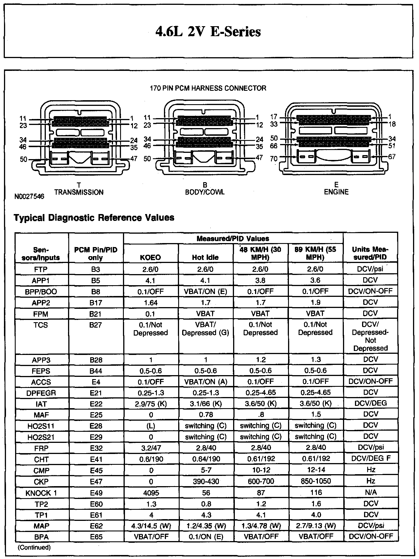 Home >> Ford >> 2007 >> E 250 V8-4.6L >> Repair and Diagnosis >> Powertrain Management >> Computers and Control Systems >> Testing and Inspection >> Scan Tool Testing and Procedures >> Typical Diagnostic Reference Values
