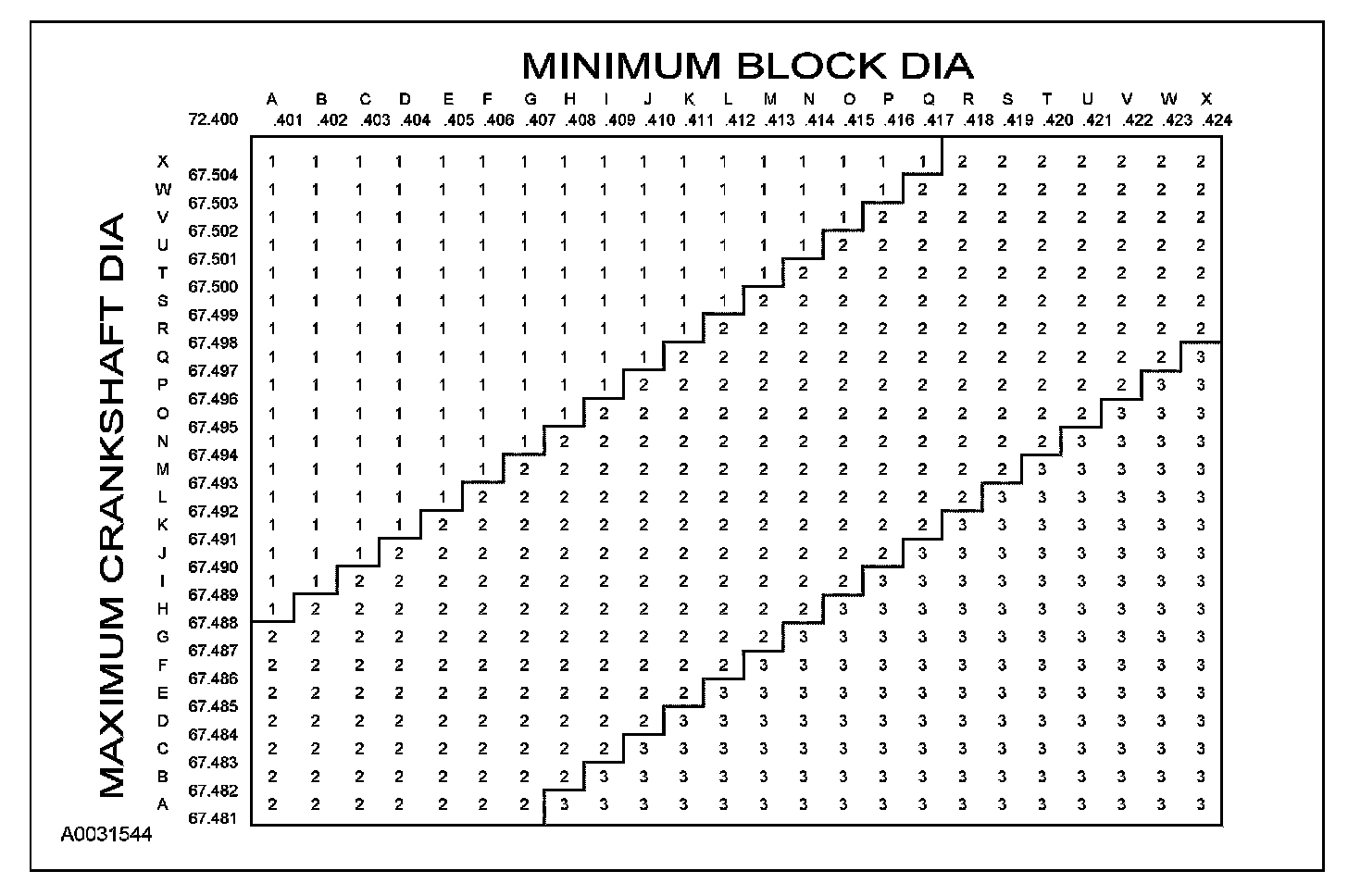 Main Bearing Size Codes