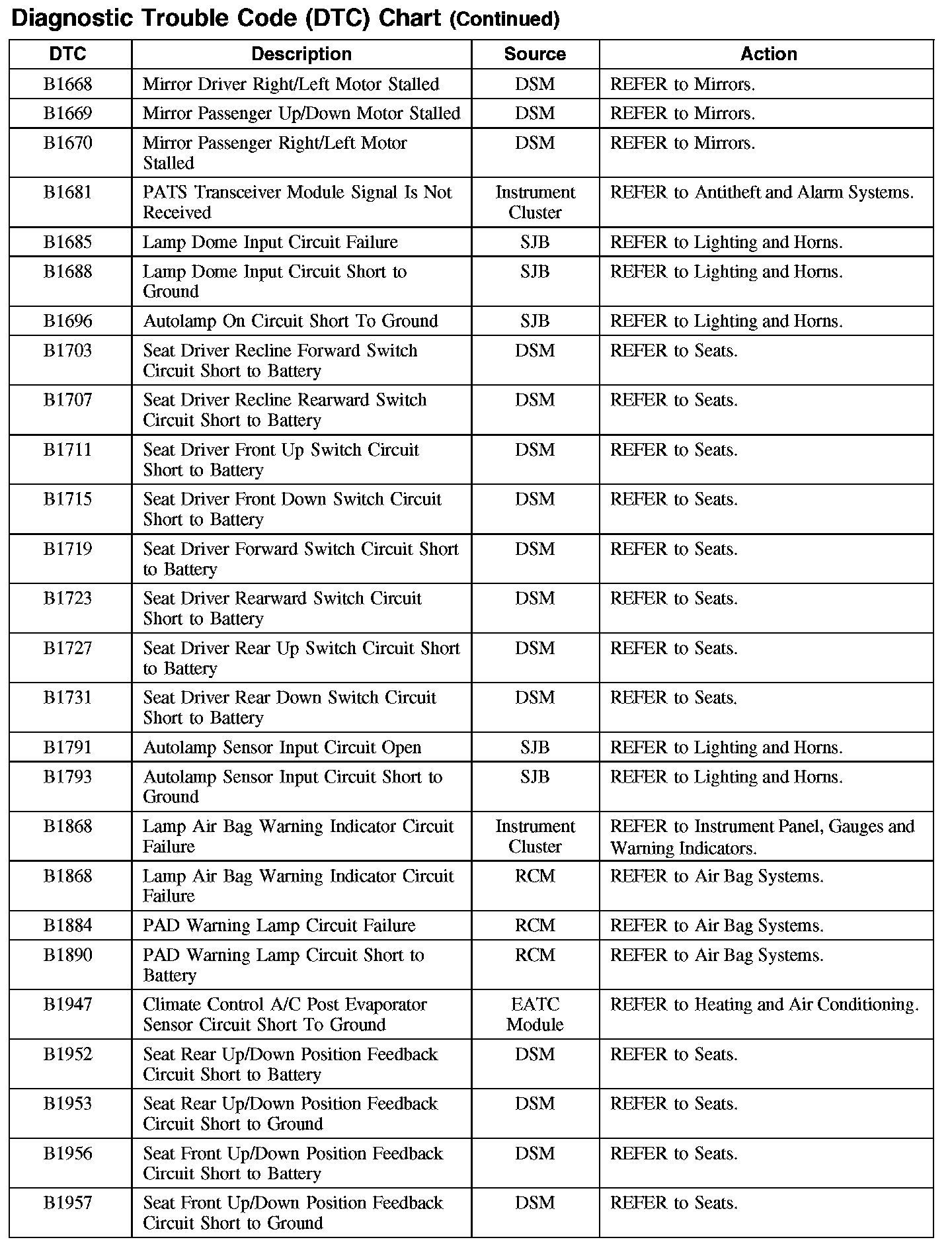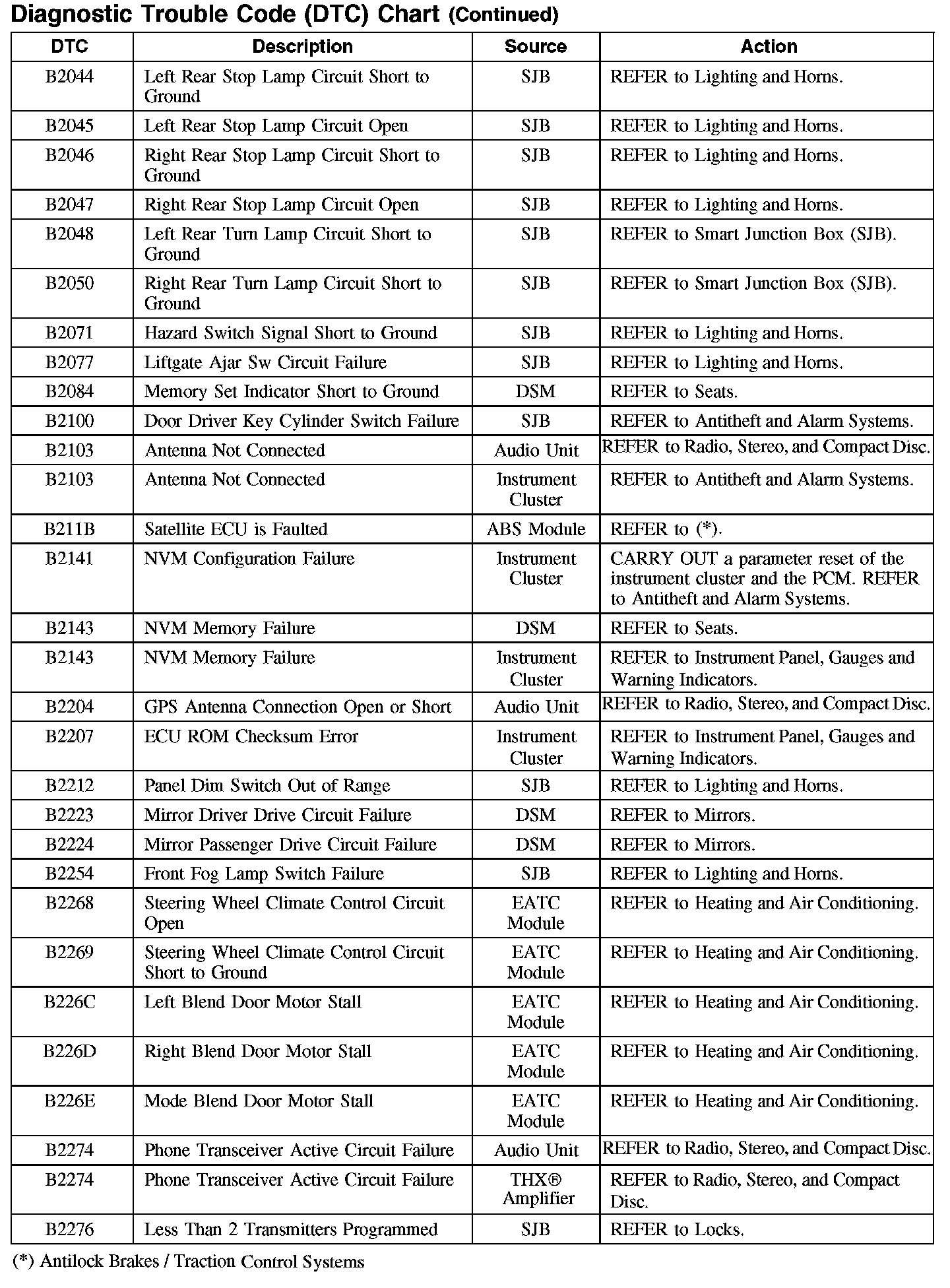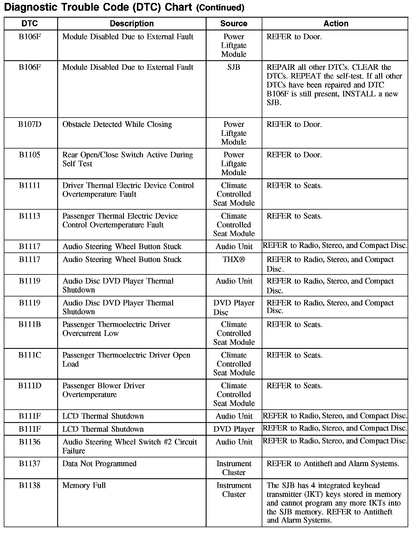 DIAGNOSTIC TROUBLE CODE (DTC) CHARTB100B-B106E:
