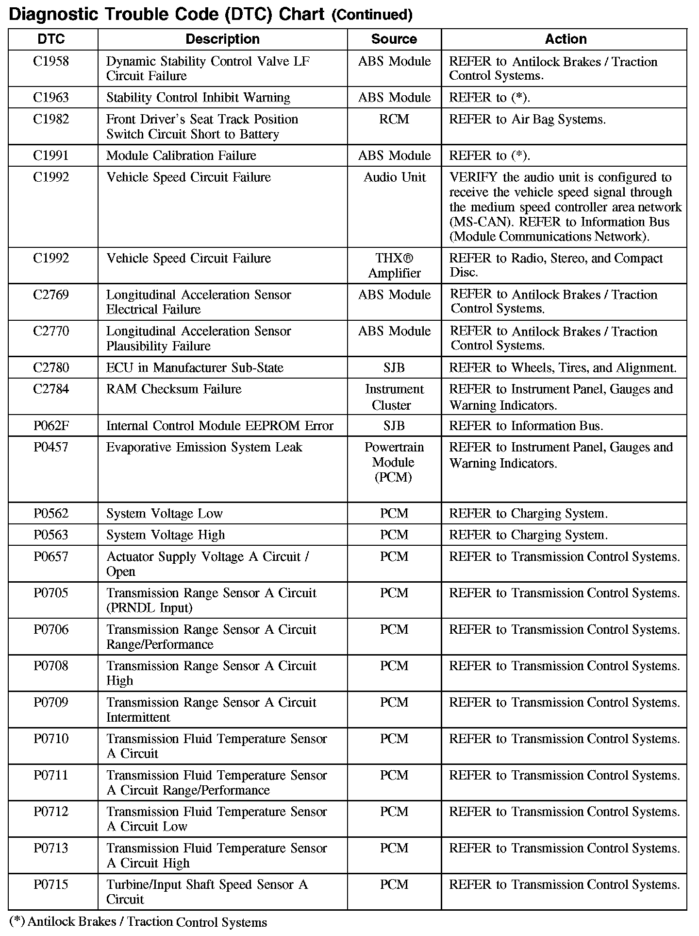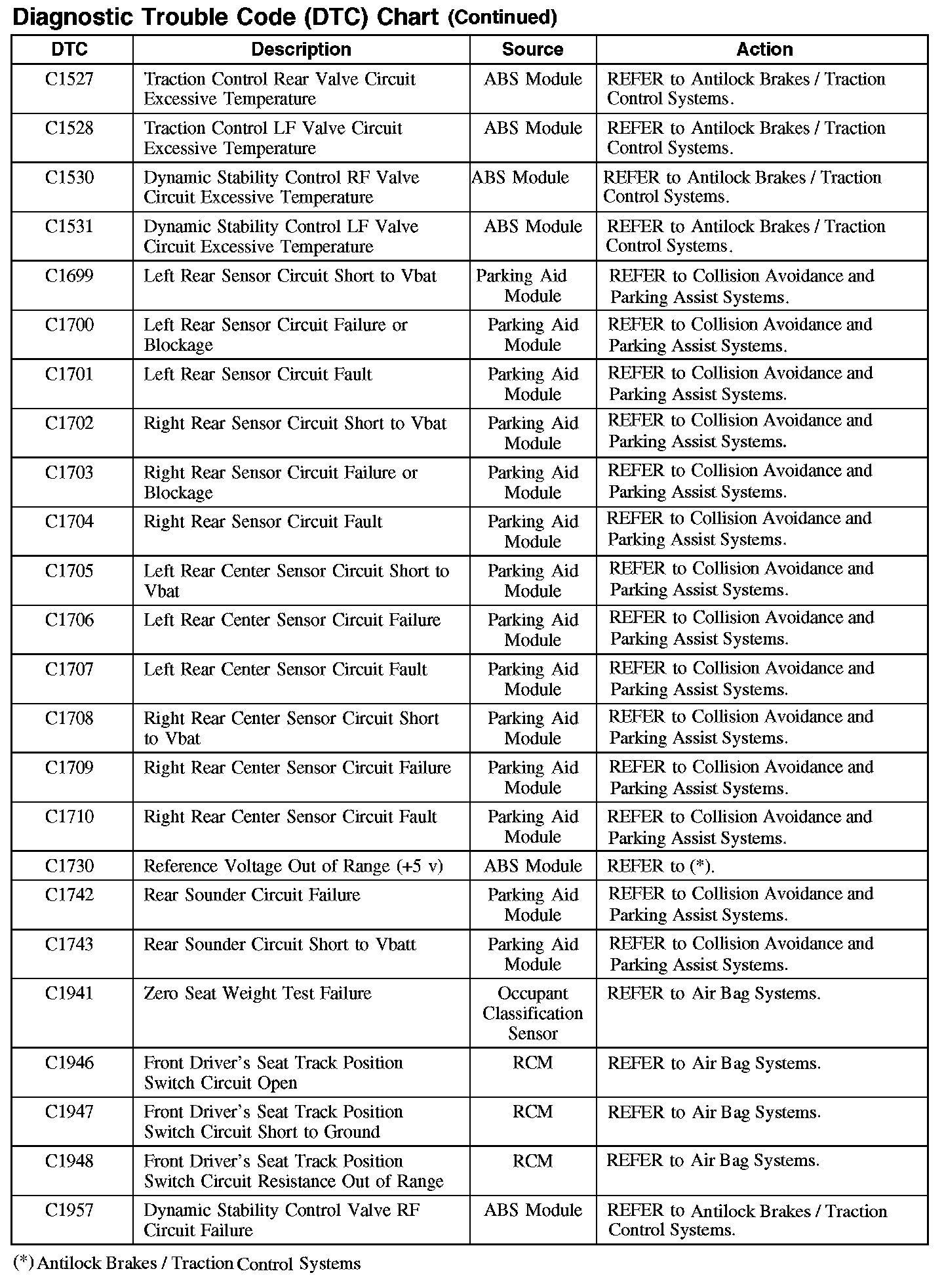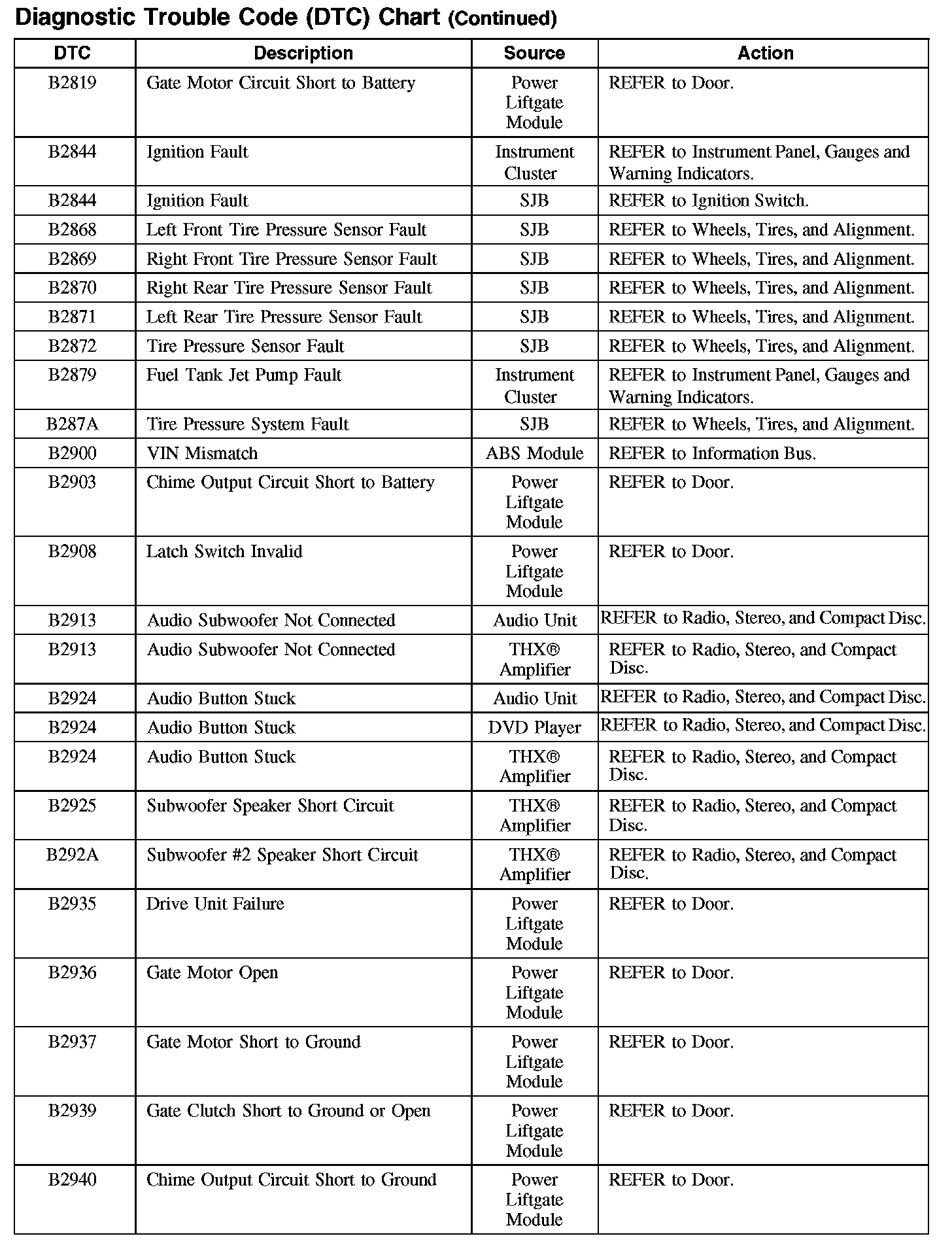 DIAGNOSTIC TROUBLE CODE (DTC) CHARTB100B-B106E: