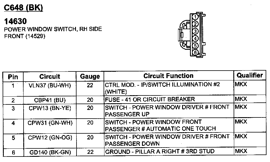 Power Window Switch, RH Side Front