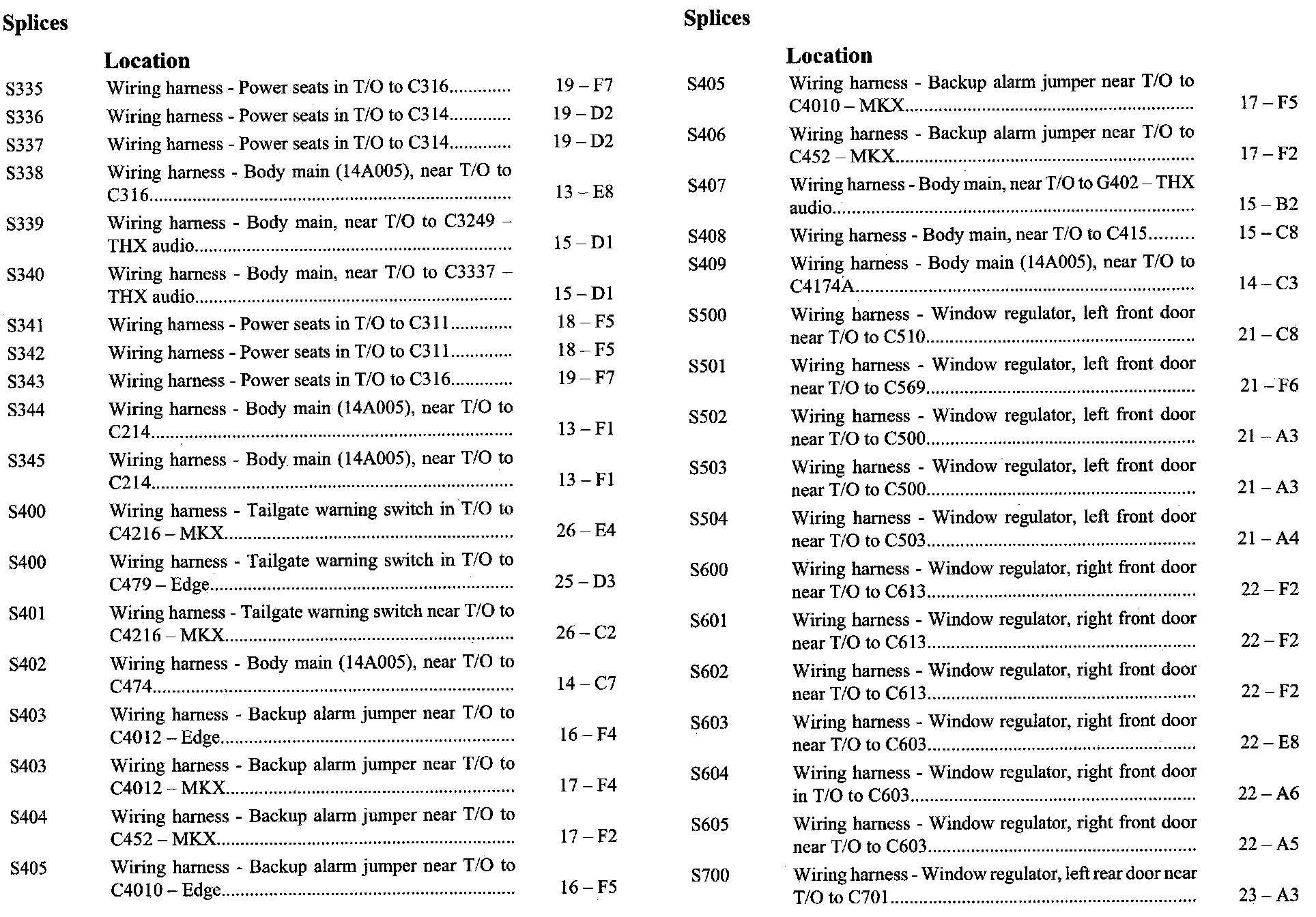 If a link on the Splices Location Index to a View is not provided, that means that the Splices and/or View in question does NOT apply to the vehicle model selected.