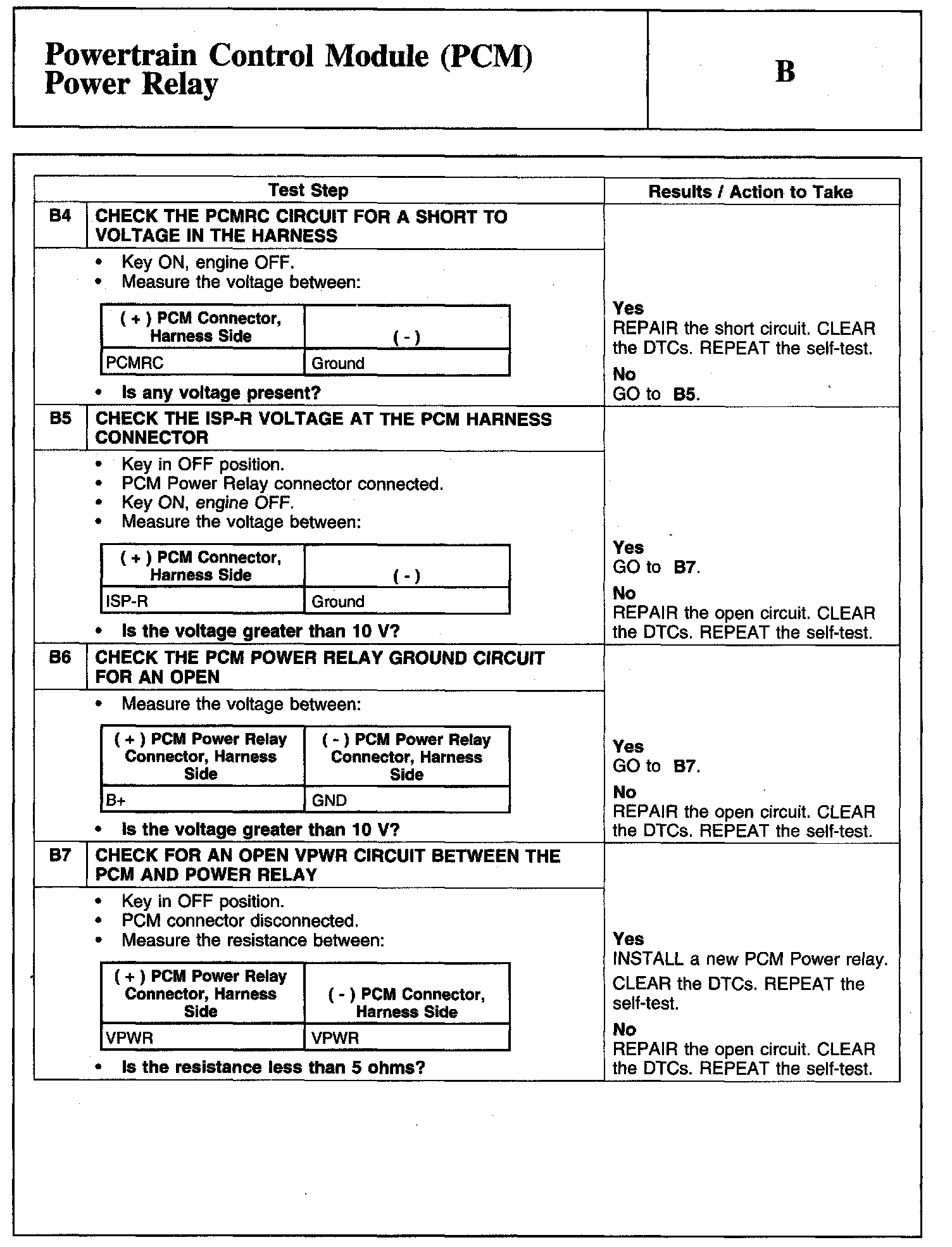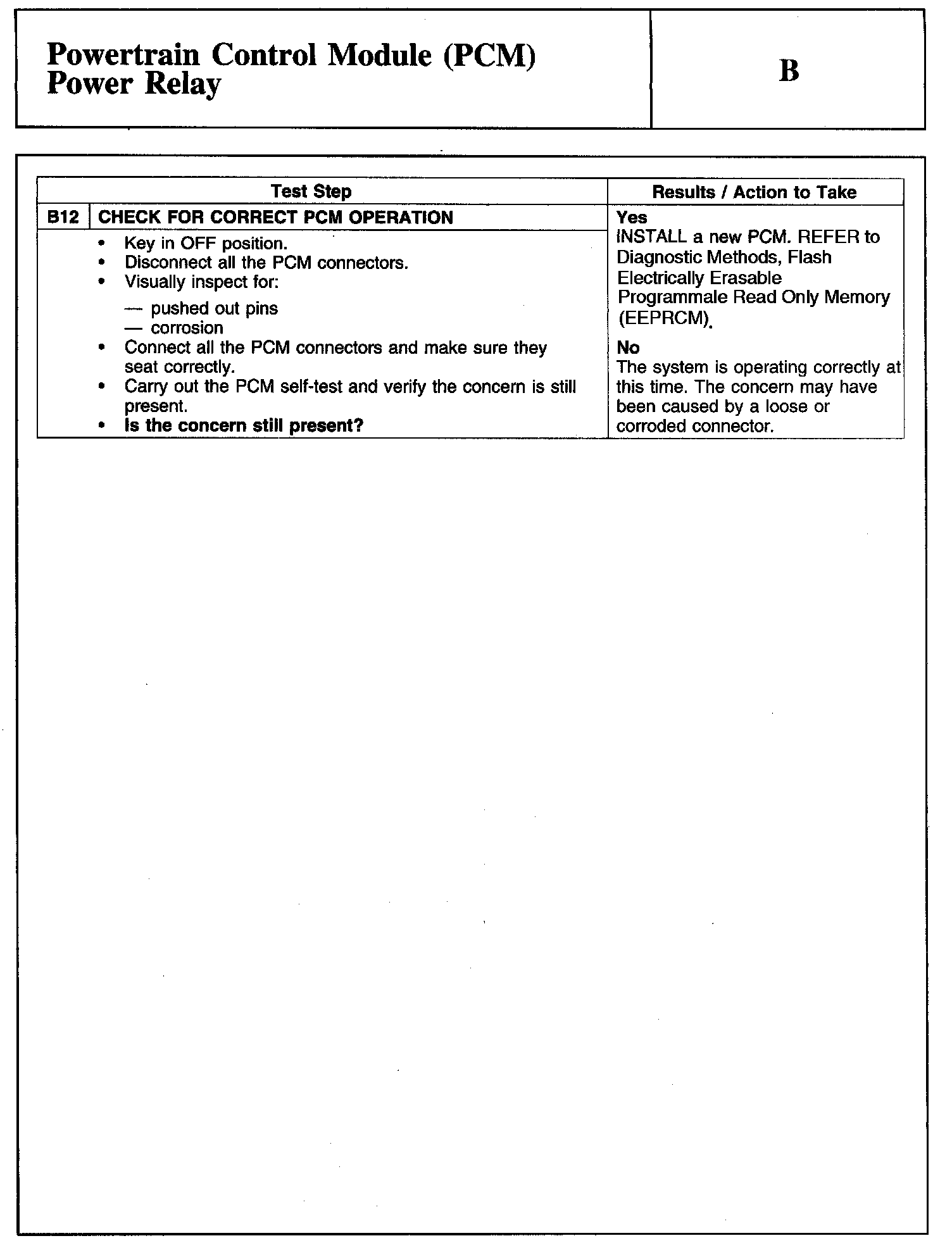 Test B: Powertrain Control Module (PCM) Power Relay