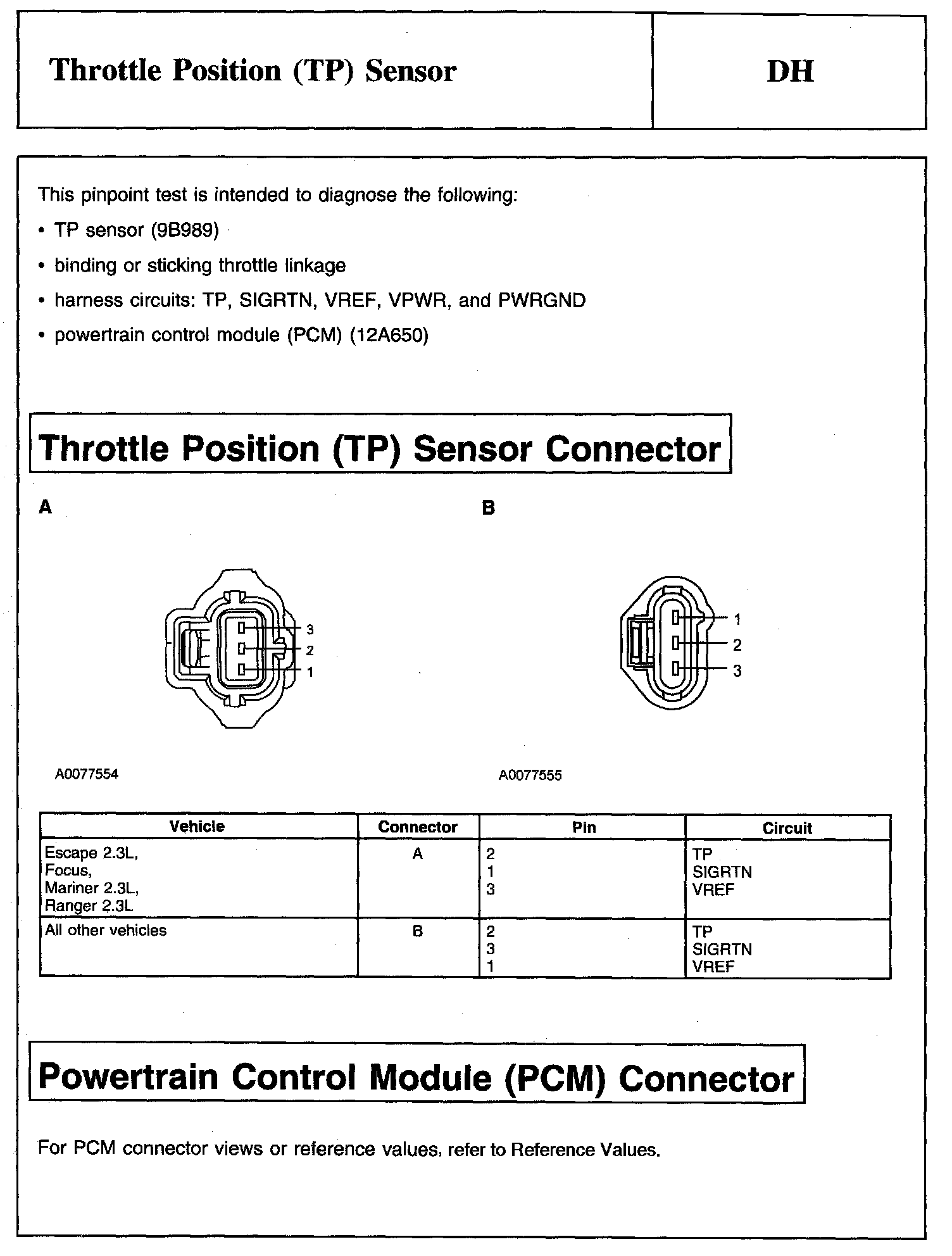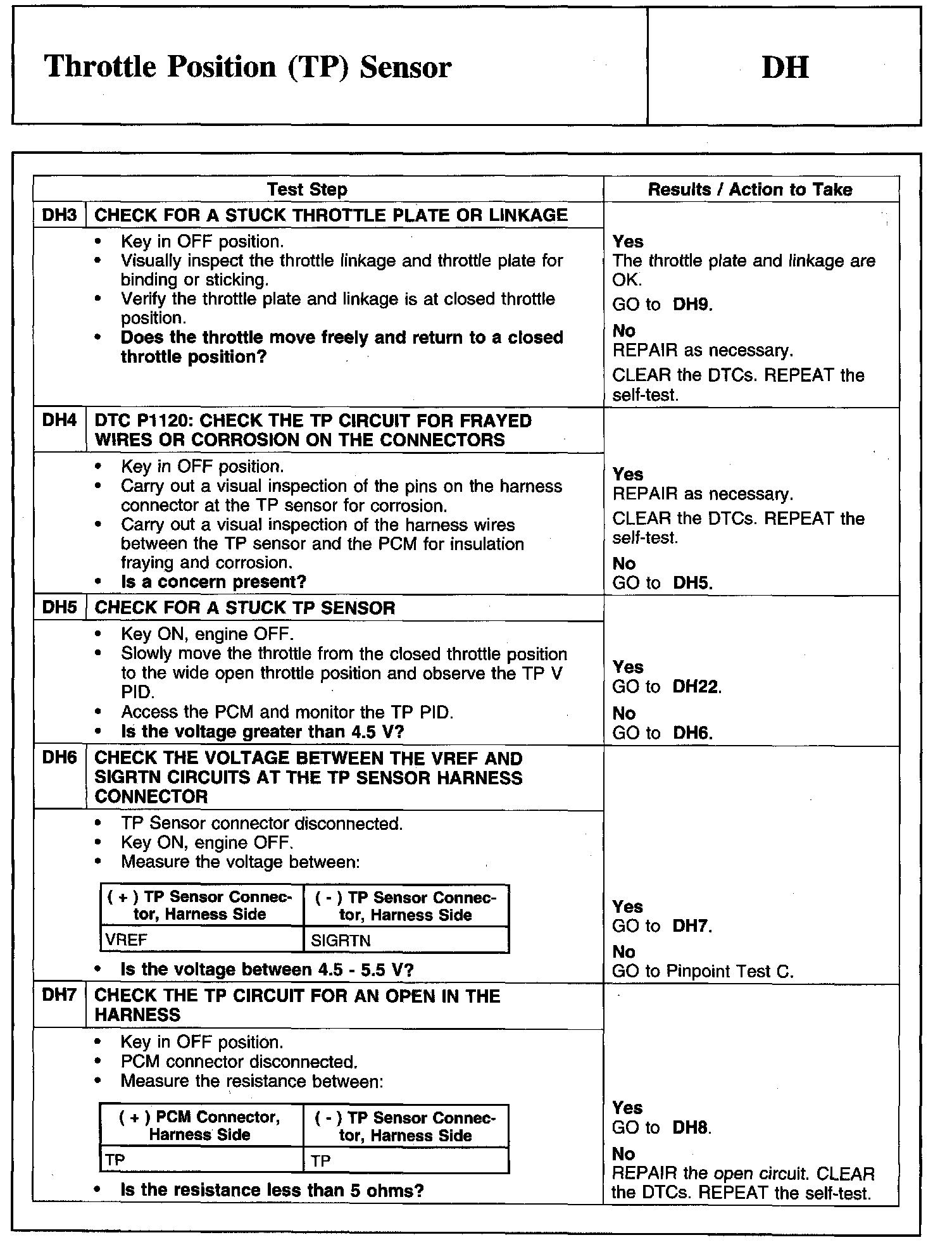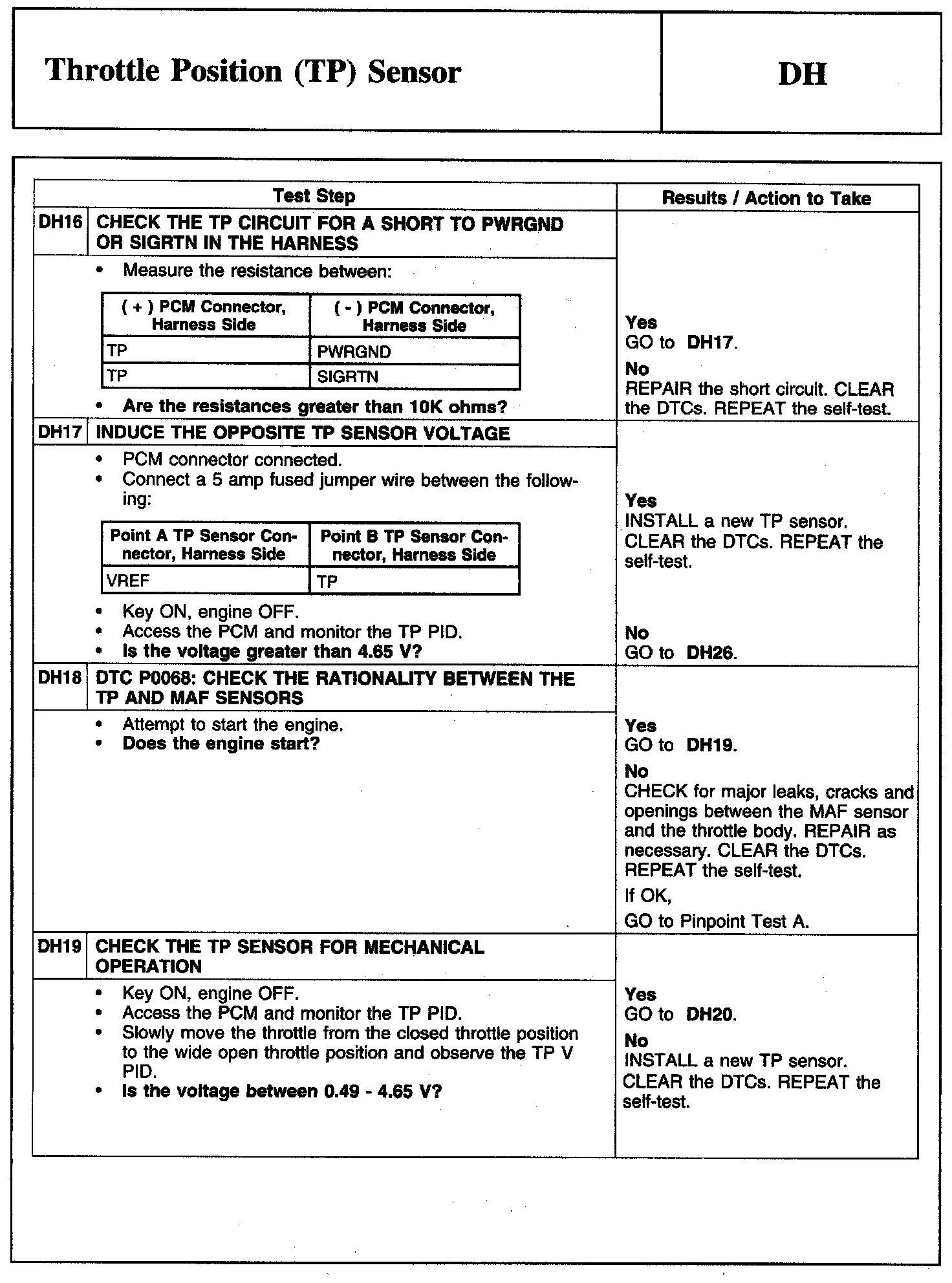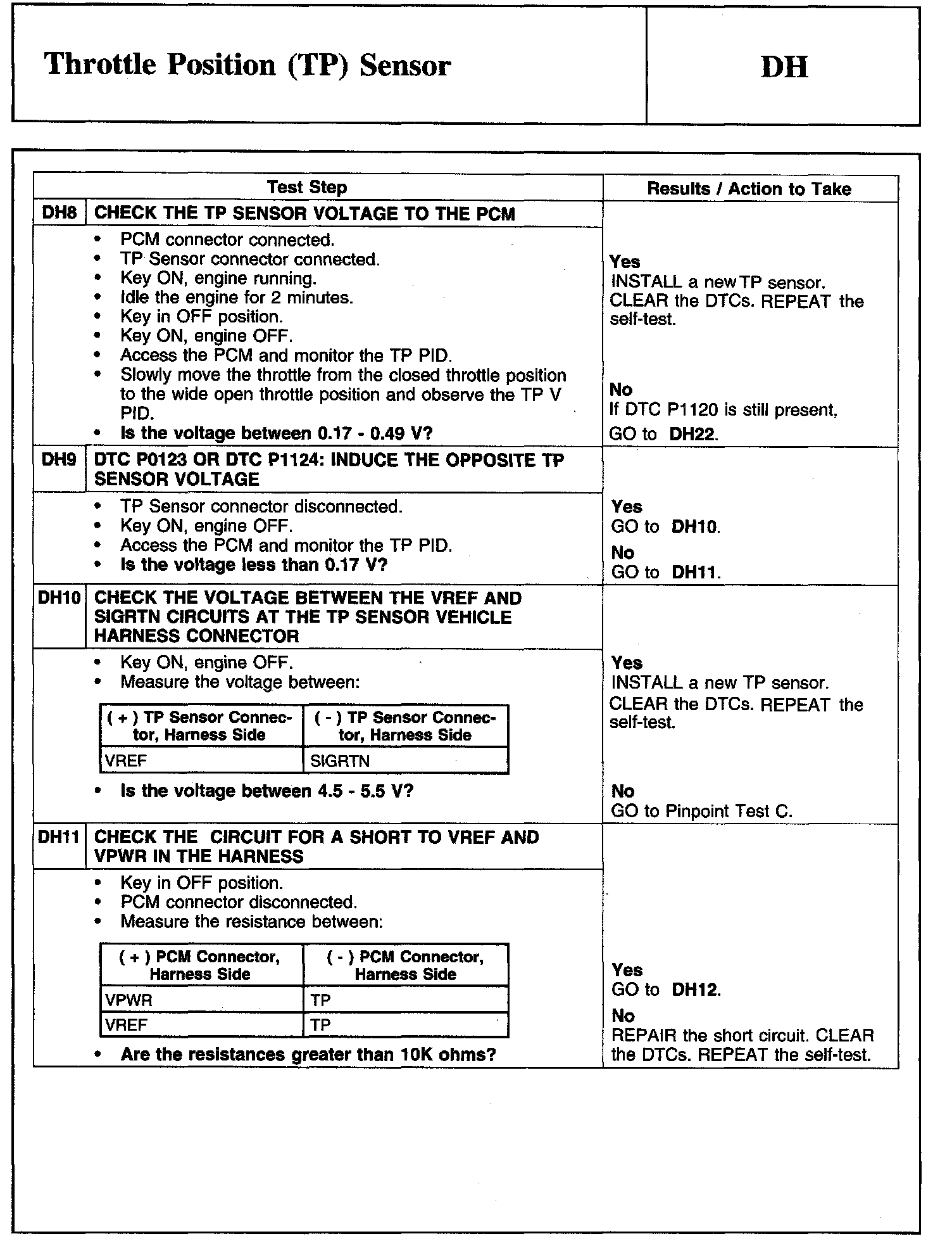 PINPOINT TEST DH: THROTTLE POSITION (TP) SENSOR