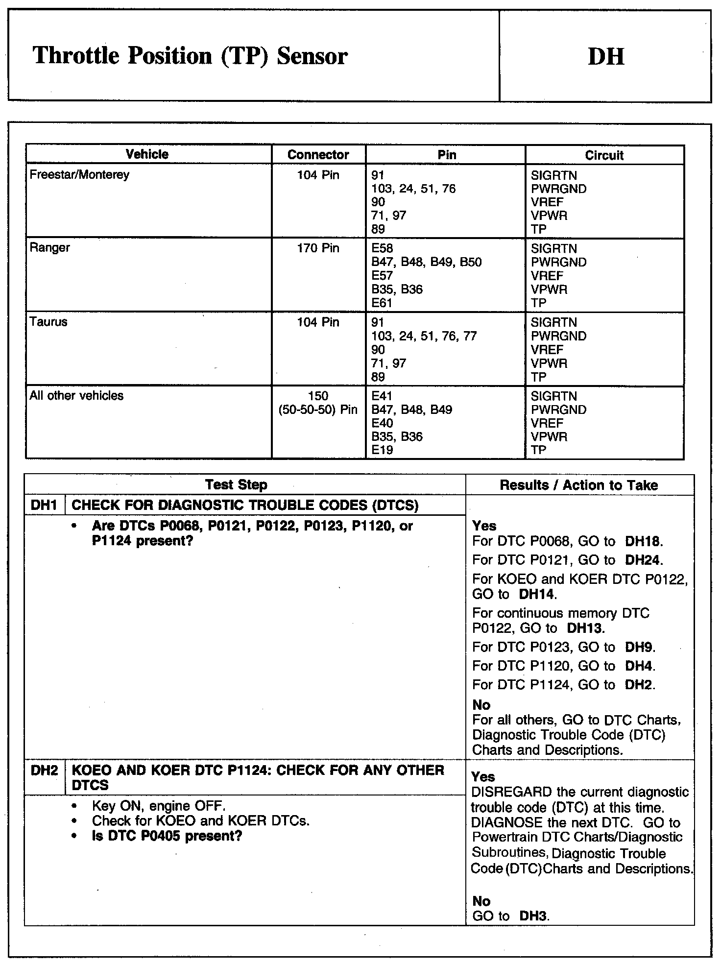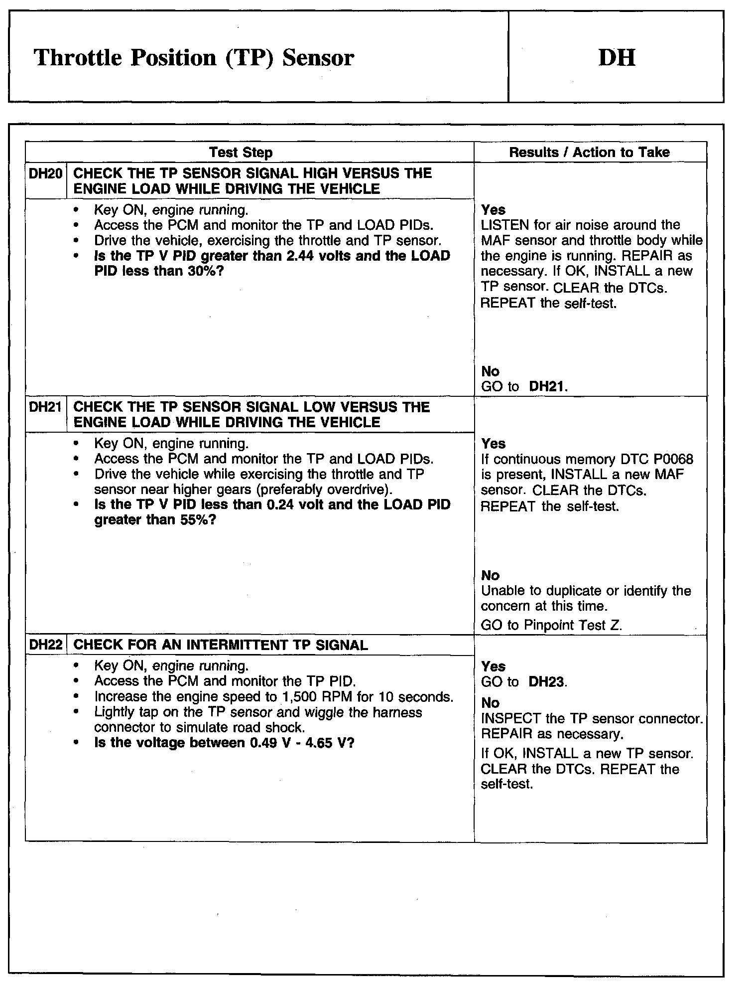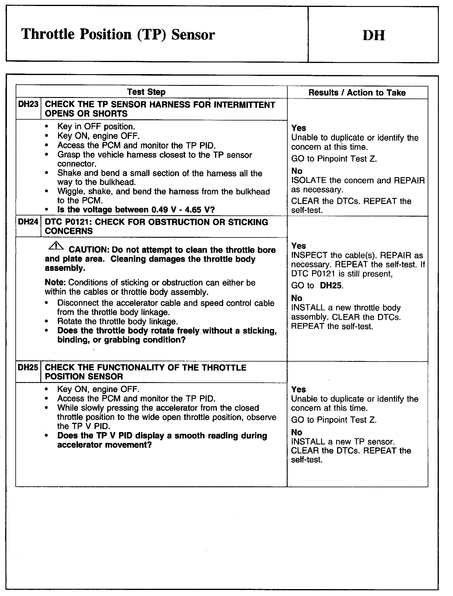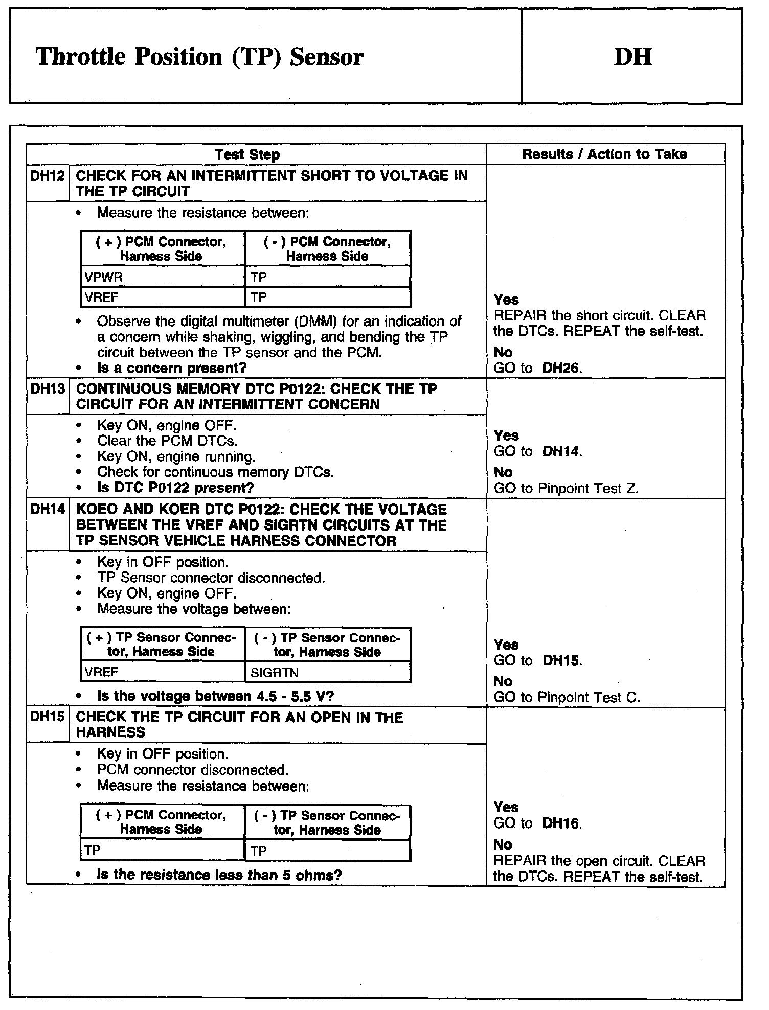 PINPOINT TEST DH: THROTTLE POSITION (TP) SENSOR